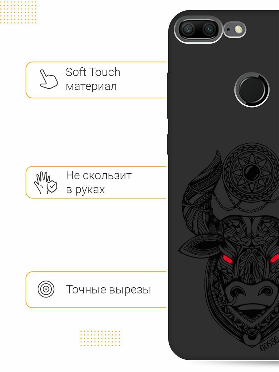 СохранитьМатовый Soft Touch силиконовый чехол на Honor 9 Lite, Хонор 9 Лайт с 3D принтом "Grand Bull" черный интересное: