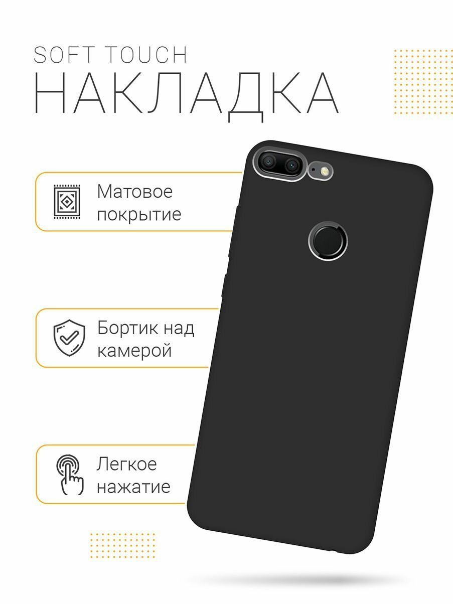 Купить Матовый Soft Touch силиконовый чехол на Honor 9 Lite, Хонор 9 Лайт черный