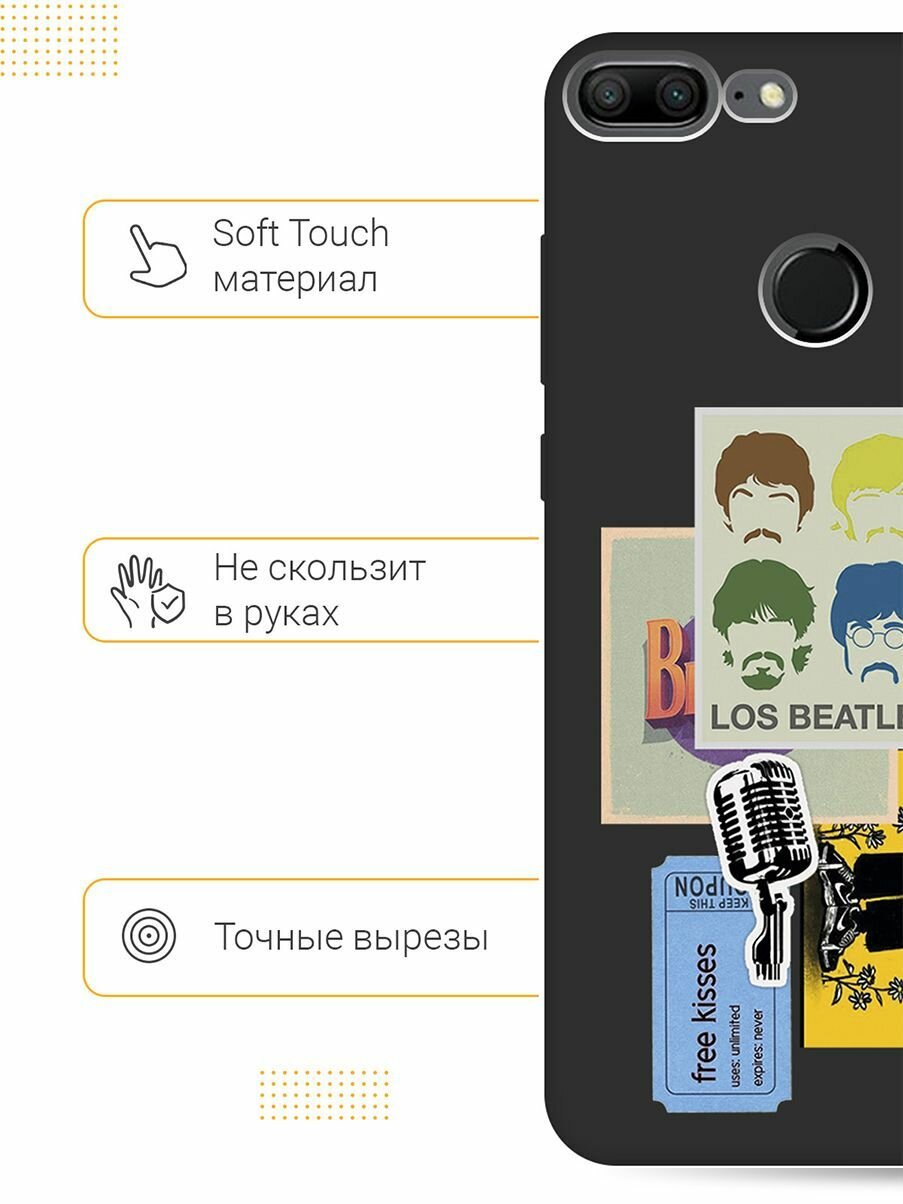 СохранитьМатовый Soft Touch силиконовый чехол на Honor 9 Lite, Хонор 9 Лайт с 3D принтом "Beatles Stickers" черный интересное: