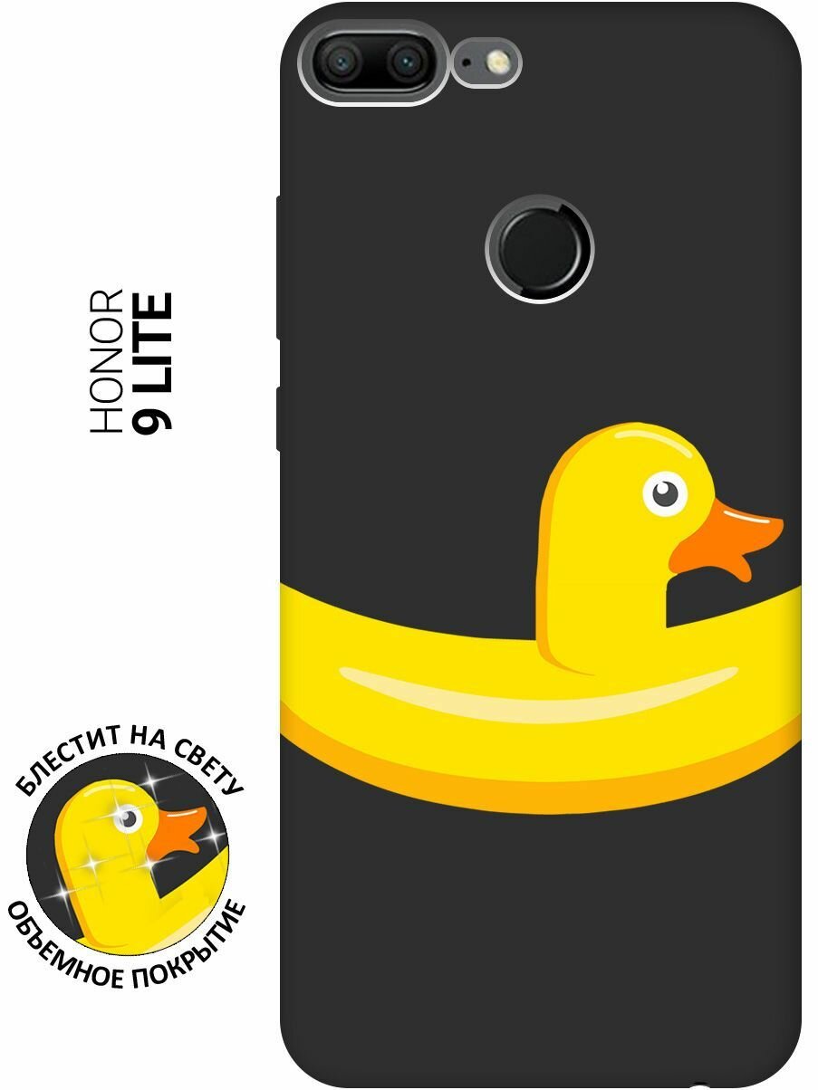 Купить Матовый Soft Touch силиконовый чехол на Honor 9 Lite, Хонор 9 Лайт с 3D принтом "Duck Swim Ring" черный