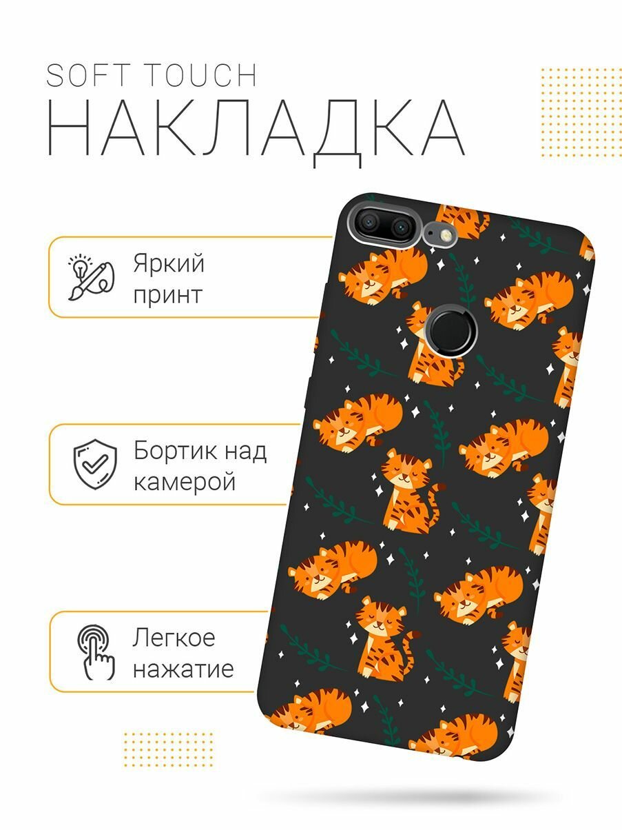 СохранитьМатовый Soft Touch силиконовый чехол на Honor 9 Lite, Хонор 9 Лайт с 3D принтом "Tigers" черный интересное: