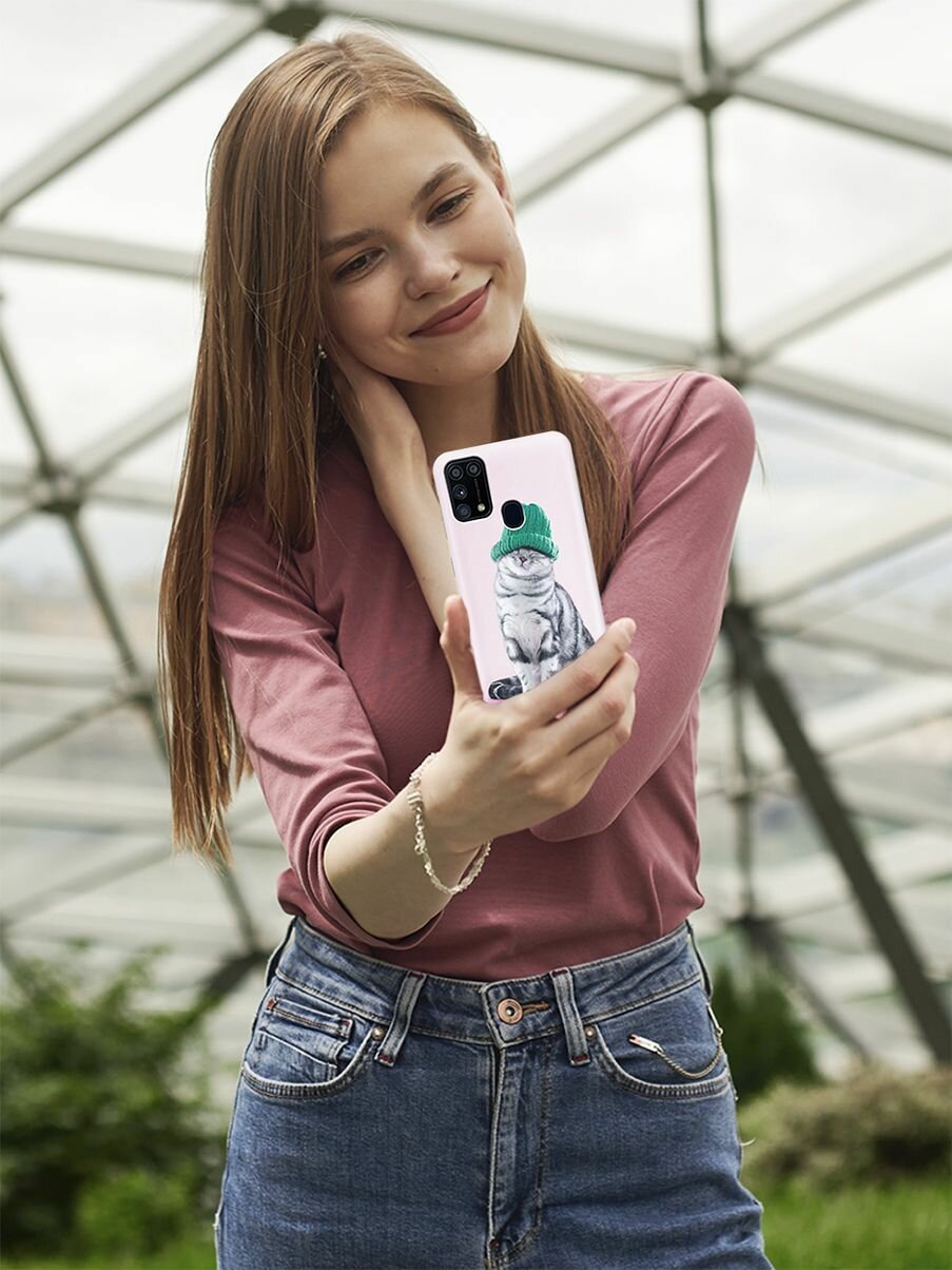 Купить Ультратонкий силиконовый чехол-накладка для Samsung Galaxy M31 с принтом "Кот в зеленой шапке"