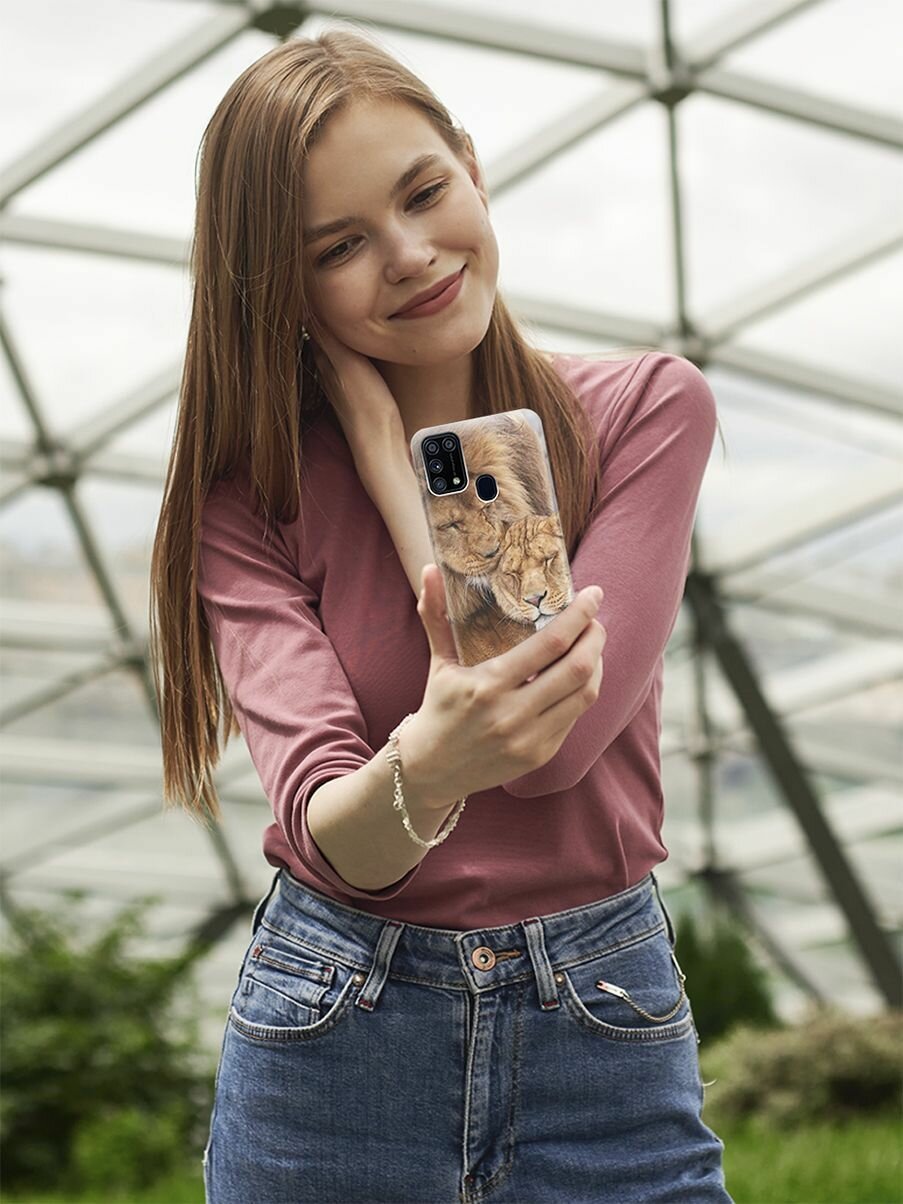 СохранитьУльтратонкий силиконовый чехол-накладка для Samsung Galaxy M31 с принтом "Милые львы" интересное: