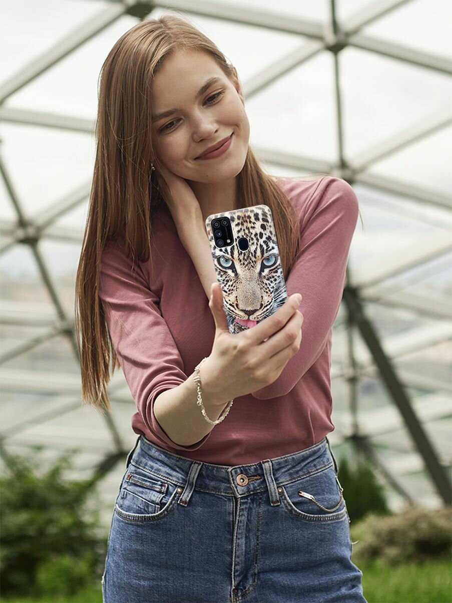 СохранитьУльтратонкий силиконовый чехол-накладка для Samsung Galaxy M31 с принтом "Леопард" интересное: