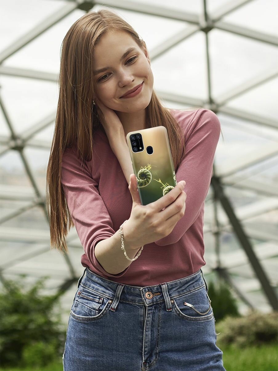 Ультратонкий силиконовый чехол-накладка для Samsung Galaxy M31 с принтом "Зеленые листья"