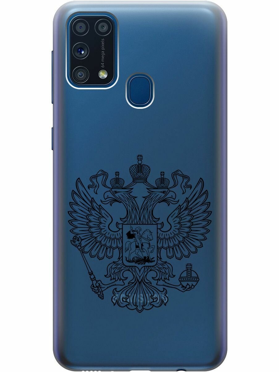 Ультратонкий силиконовый чехол-накладка для Samsung Galaxy M31 с принтом "Герб и Флаг РФ"