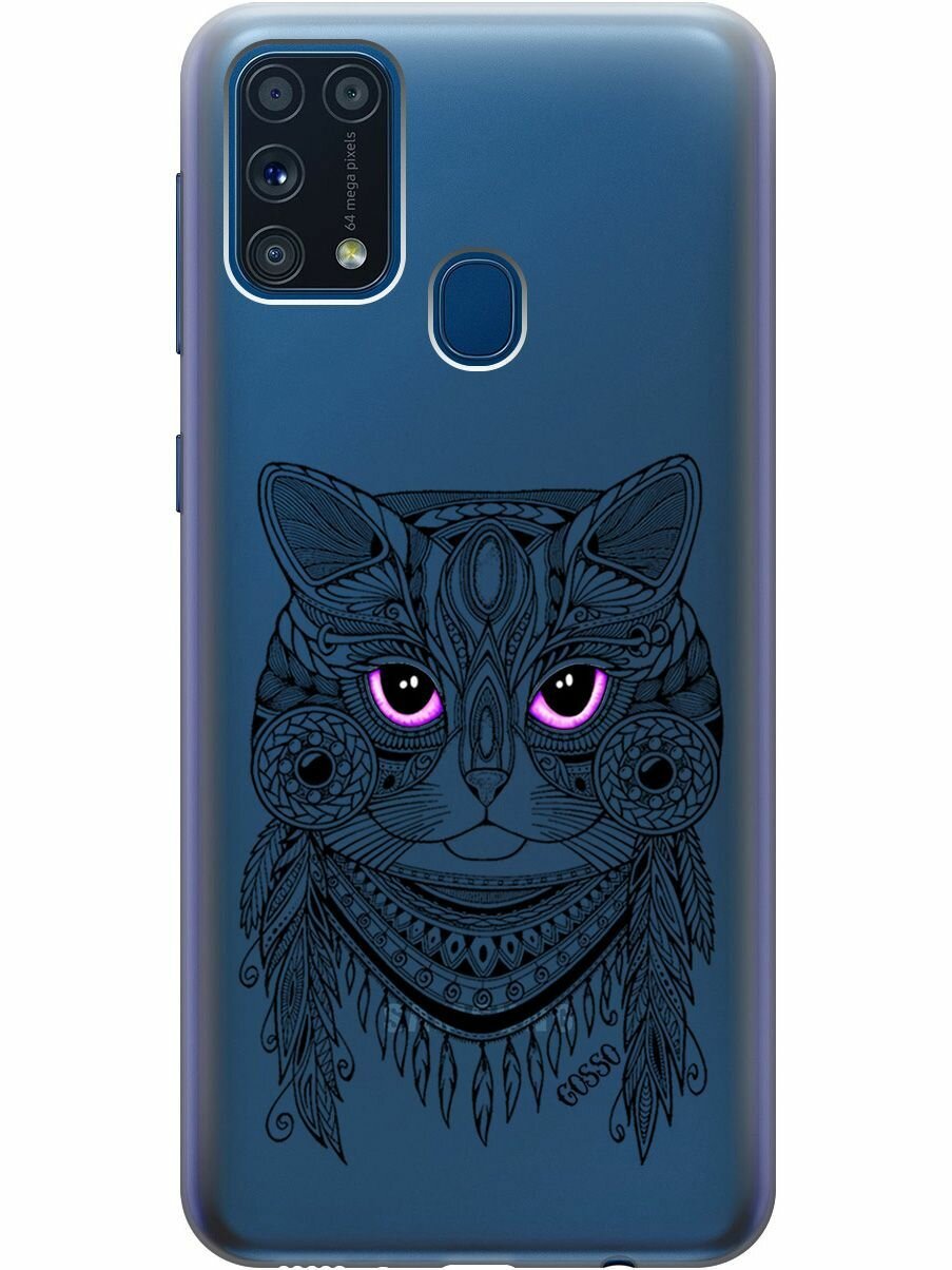 Ультратонкий силиконовый чехол-накладка Transparent для Samsung Galaxy M31 с 3D принтом "Shaman Cat"