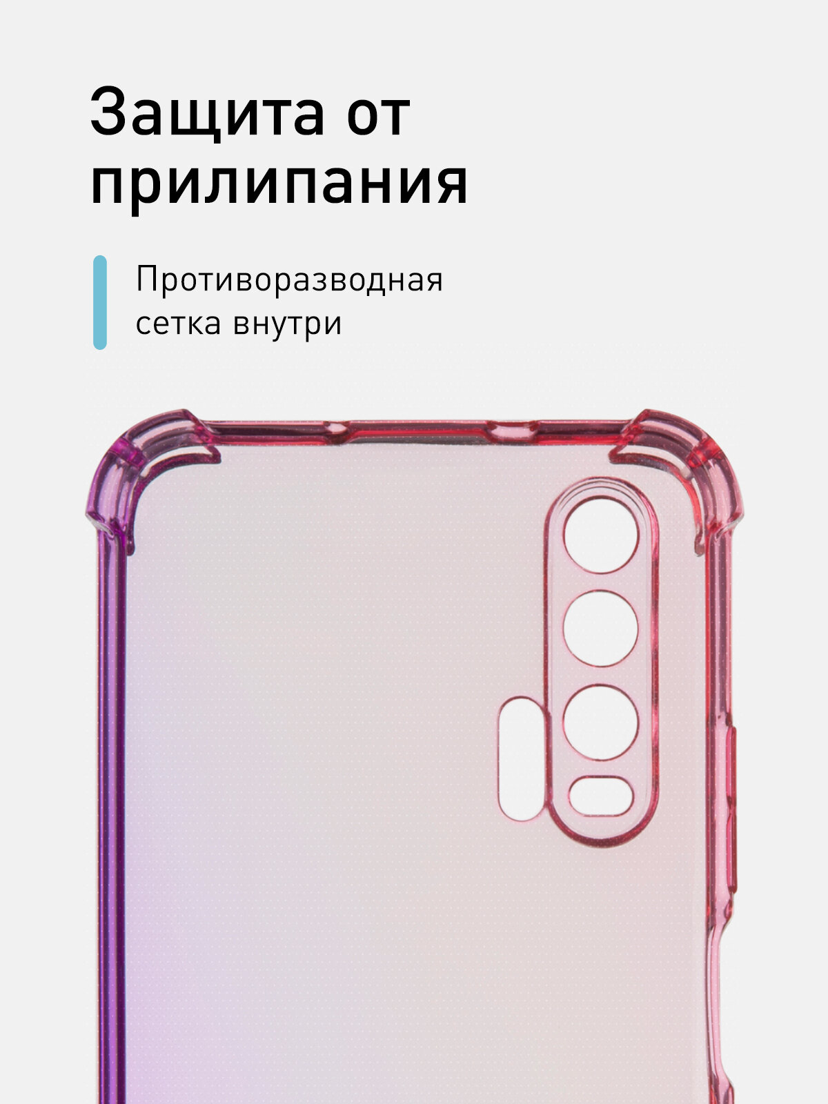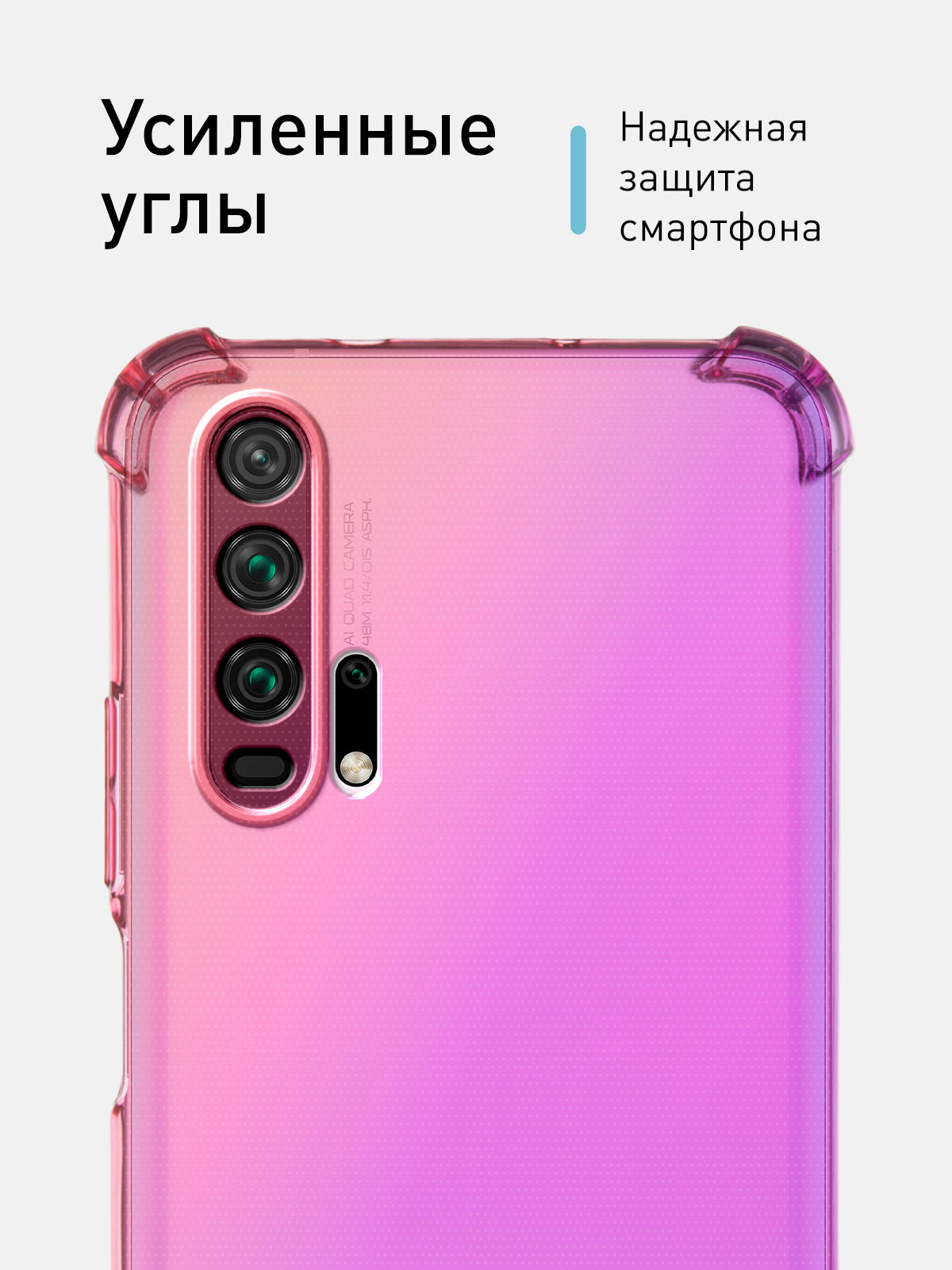 СохранитьПротивоударный чехол ROSCO для Honor 20 Pro (Хонор 20 Про) силиконовый с усиленными углами, защита вокруг блока камер, прозрачный фиолетово-розовый интересное: