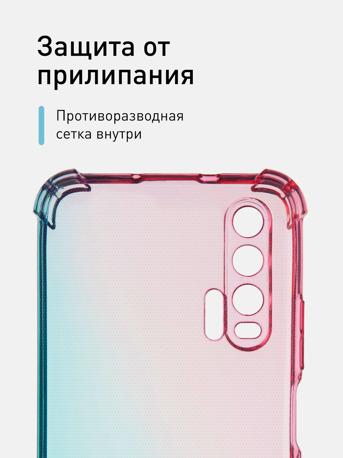 СохранитьПротивоударный чехол-накладка для Honor 20 Pro (Хонор 20 Про) усиленные углы, силиконовый с защитой блока камеры, прозрачный розово-голубой ROSCO интересное: