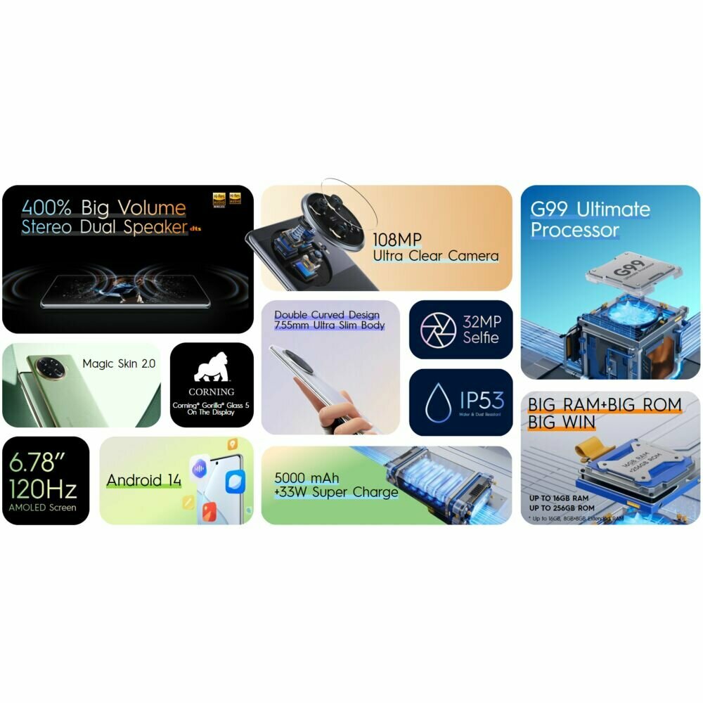 Сотовый телефон Tecno Spark 20 Pro Plus 8/256Gb KJ7 Lunar Frost & Wireless Headphones