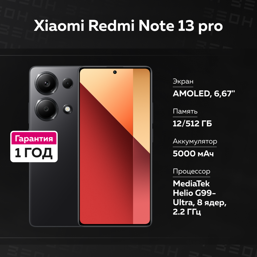 Смартфон Xiaomi Redmi Note 13 Pro 4G 12/512 ГБ (NFC) RU, черный