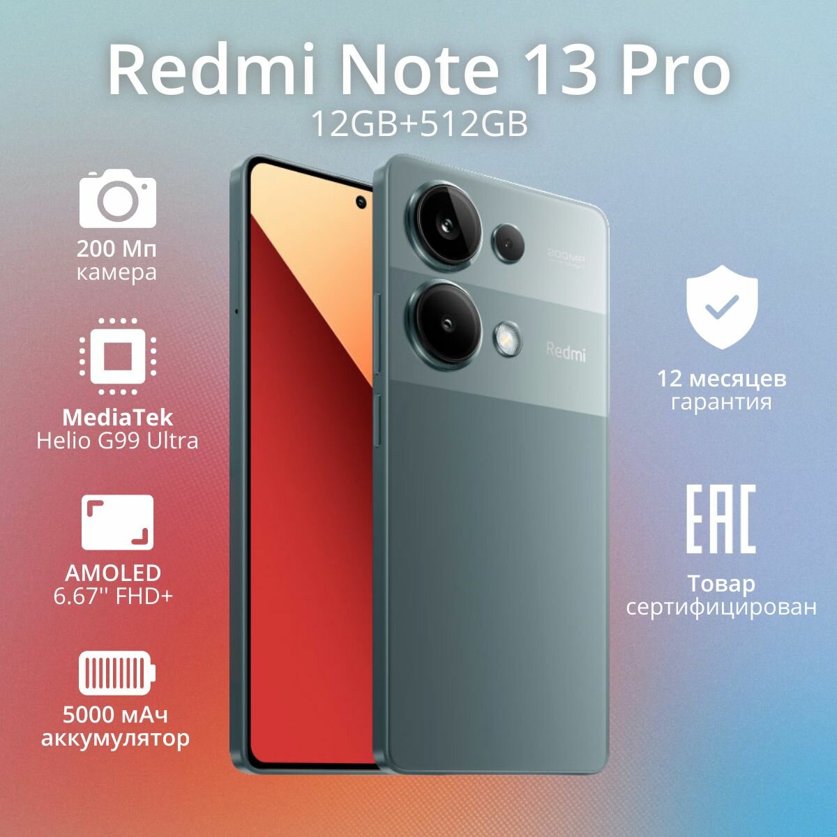 Смартфон Xiaomi Redmi Note 13 Pro 12/512Gb NFC Ростест Forest Green