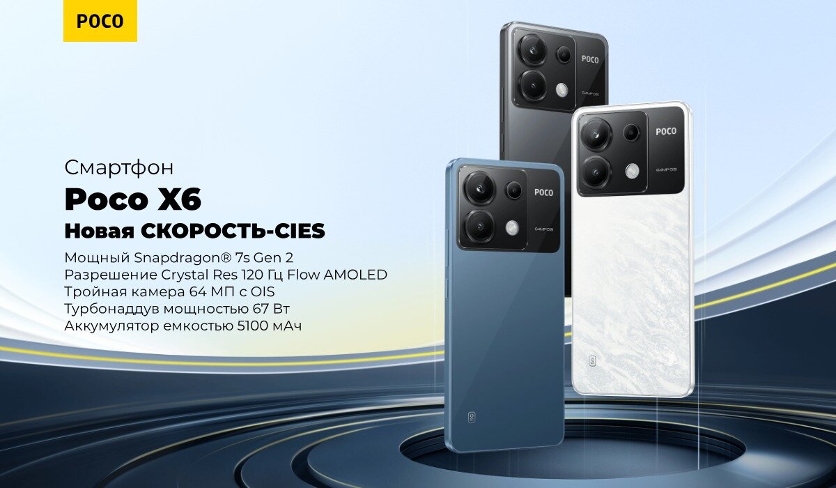 Смартфон POCO X6 RU 5G 12+256 N16P/Blue/6.67" AMOLED/2712x1220/120Hz/SD7s Gen2/And13/64+8+2MP/16MP/microSD/5000mAh