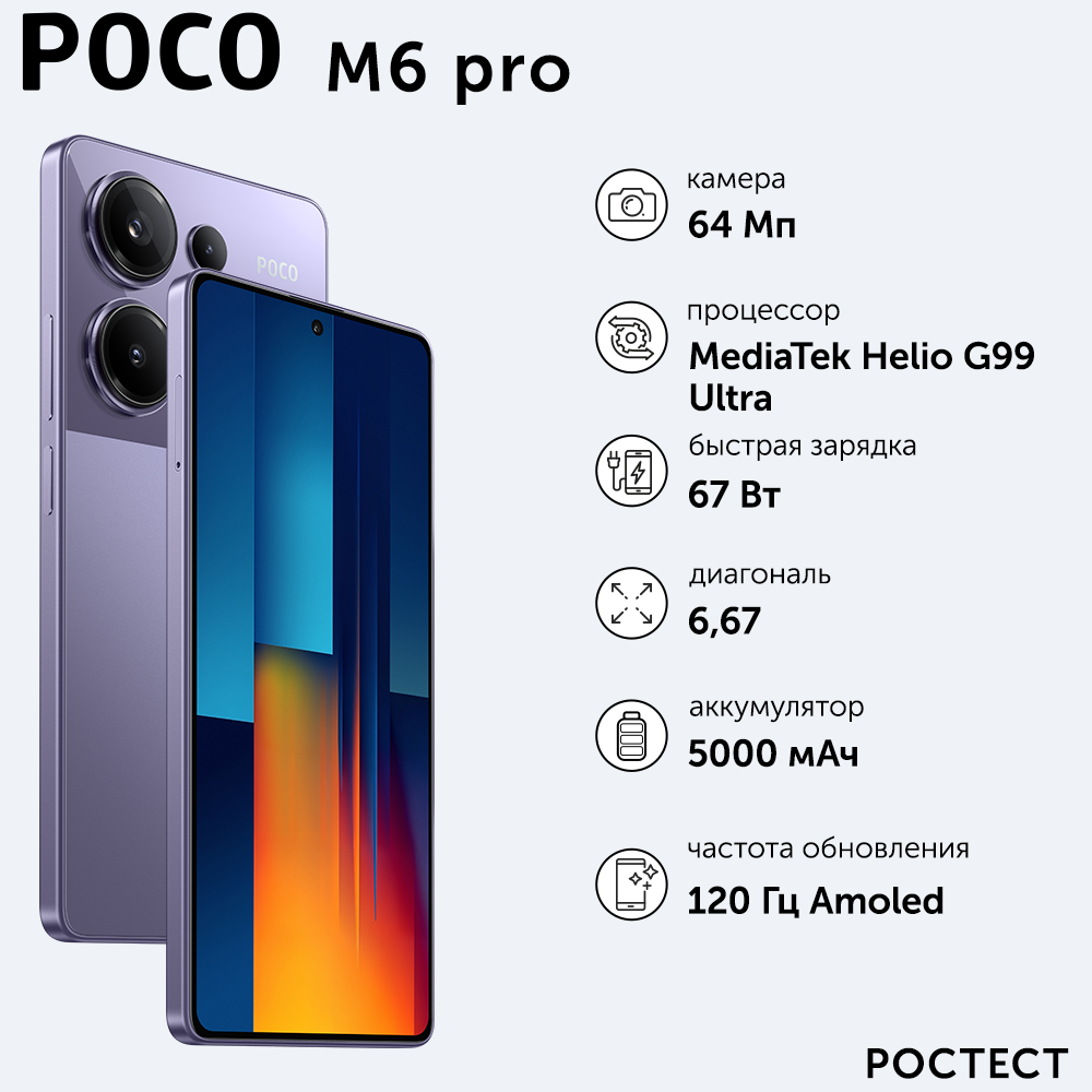 Смартфон POCO M6 Pro RU 12+512 ГБ/Purple/6.67"FHD+/AMOLED/Ростест