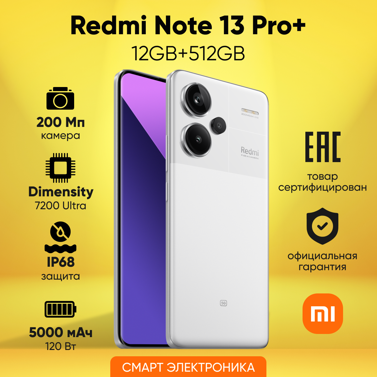 Купить Смартфон Xiaomi Redmi Note 13 Pro Plus 5G, 12/512Gb RU, white
