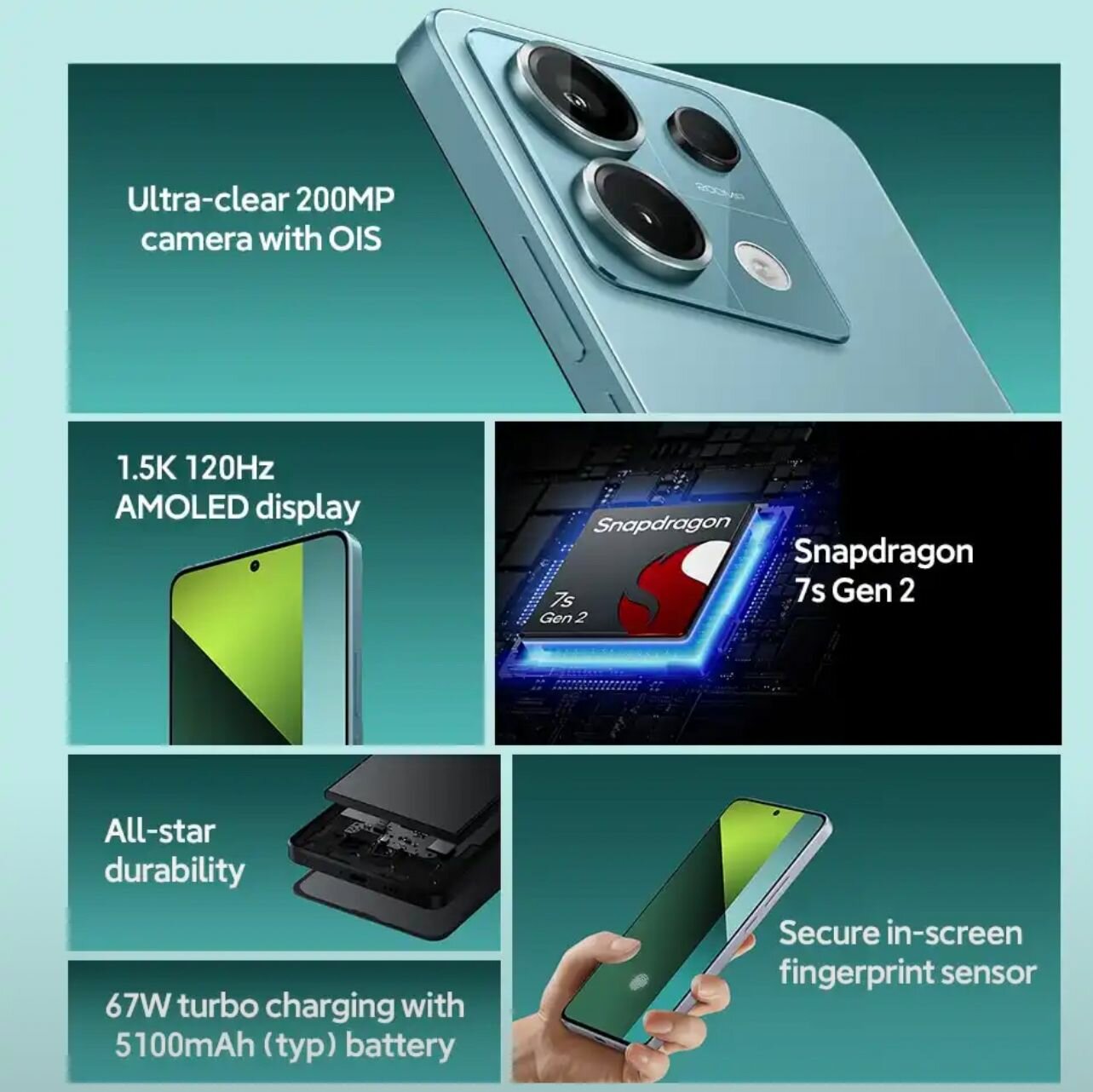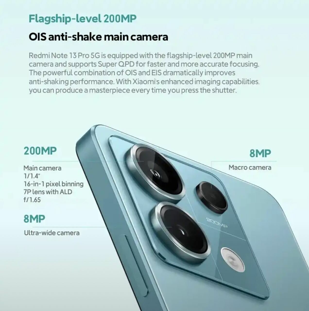 Смартфон Xiaomi Redmi Note 13 Pro 5G, 12ГБ/256ГБ, Ocean Teal (Синий), AMOLED, 6.67", 120 Гц, Android 13, Global ROM