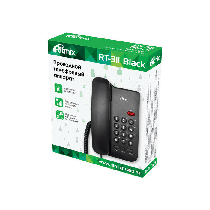 Телефон RITMIX RT-311 black, световая индикация звонка, тональный/импульсный режим, повтор, черный, 80002231