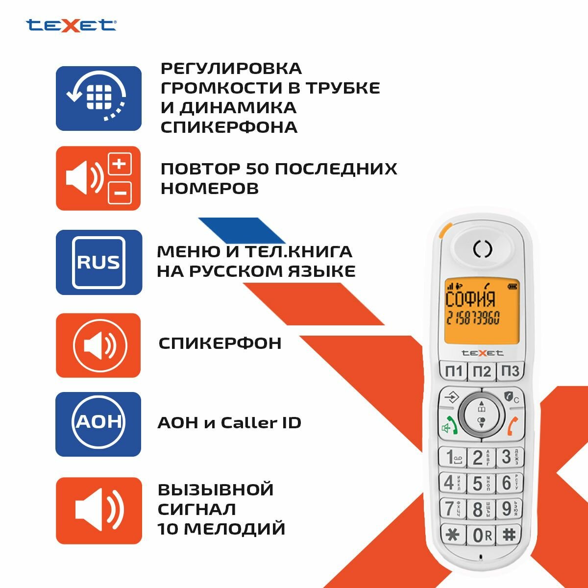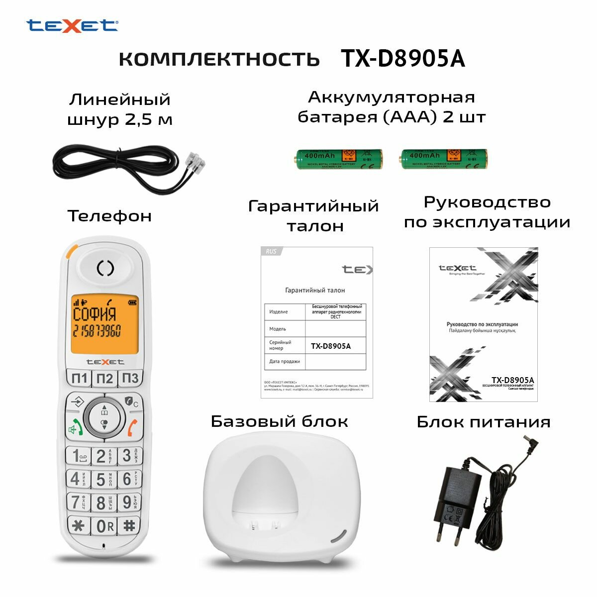 Радиотелефон TEXET TX-D8905A белый (127224) интересное: