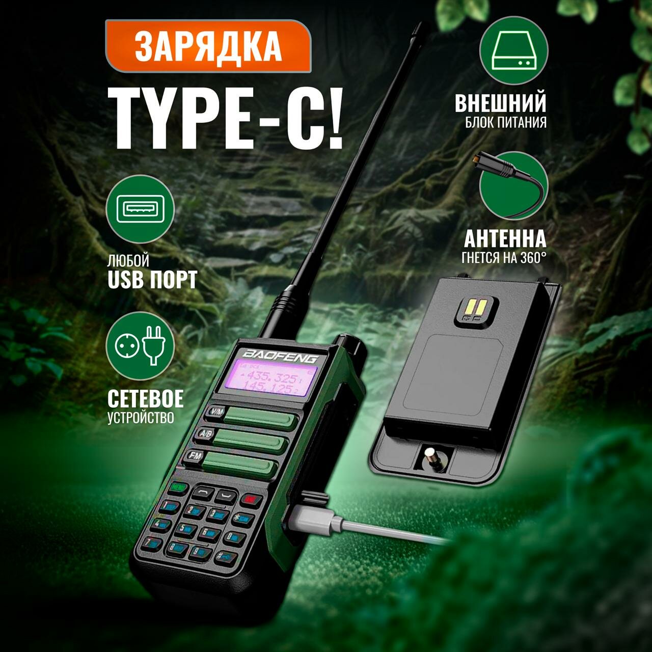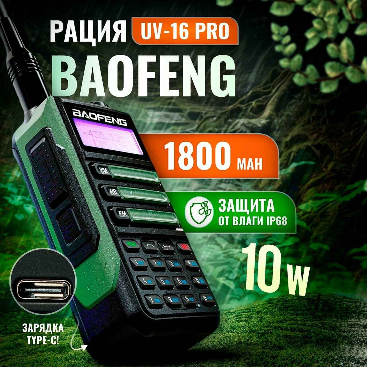 Рация UV-16 PRO двухдиапазонная, влагозащитная 10W Type-C зеленая интересное: