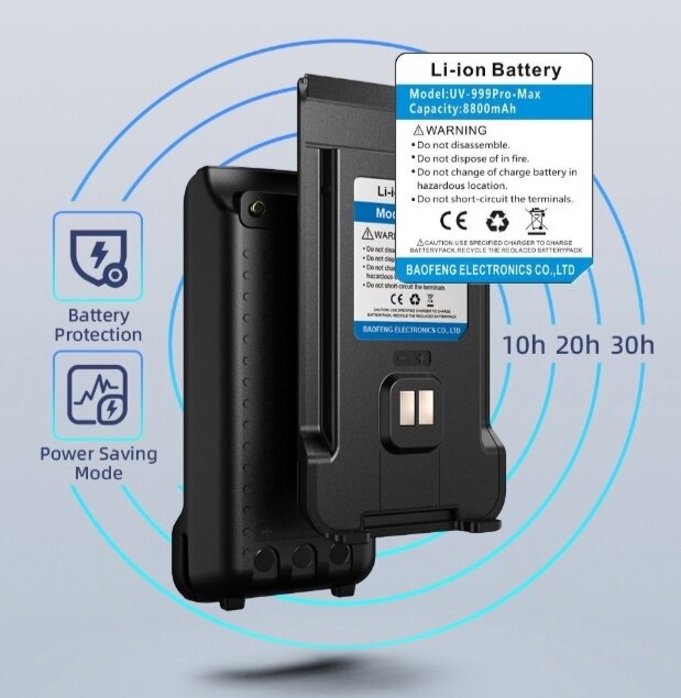 Рация Baofeng UV-999 ProMax 10 Вт класс водонепроницаемости IP X4 цвет черный