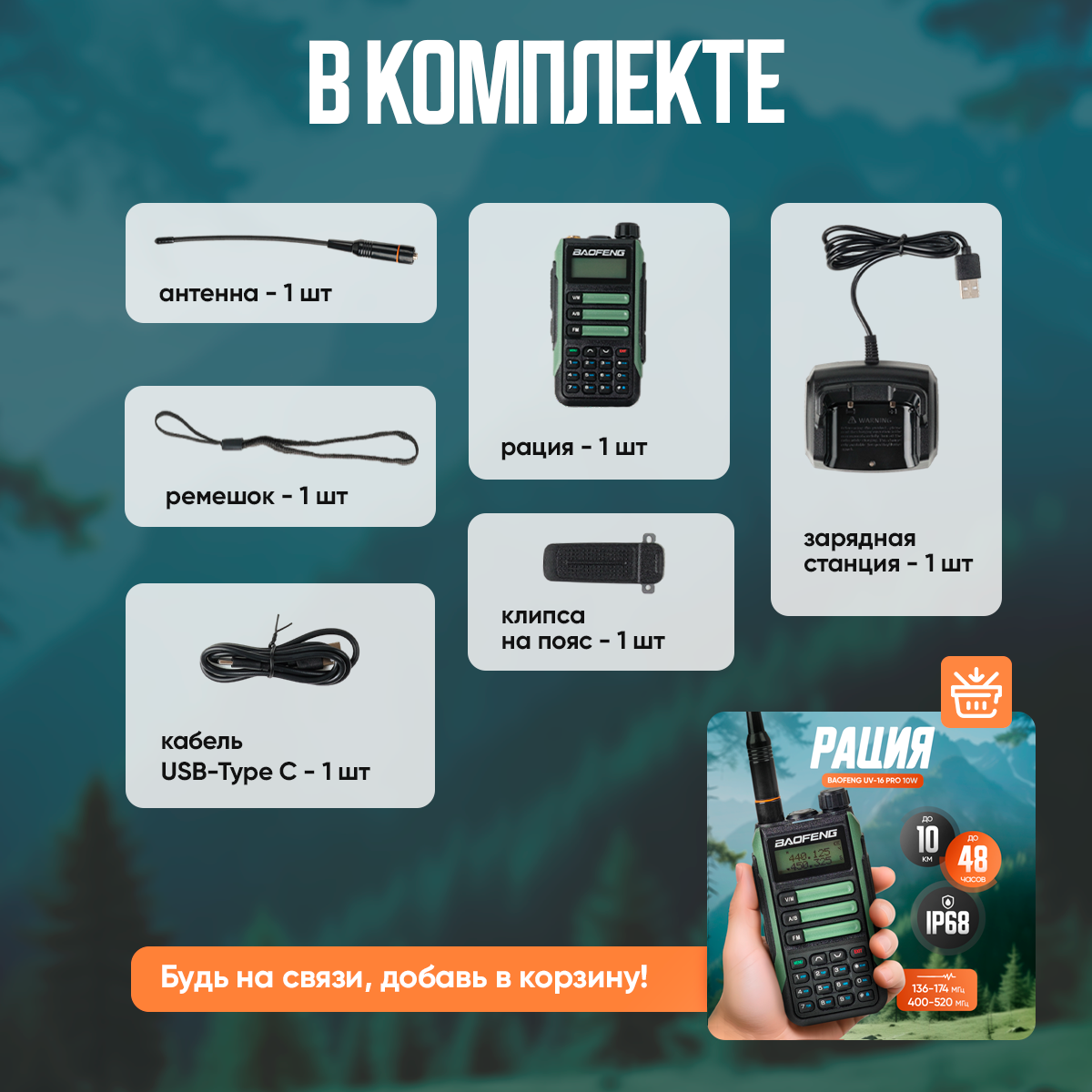 Рация Baofeng UV-16 Pro 10W Зеленая интересное: