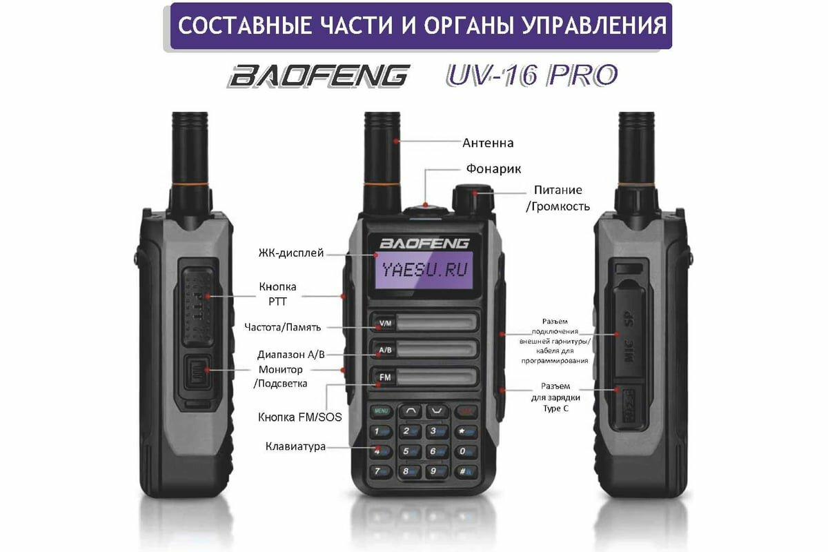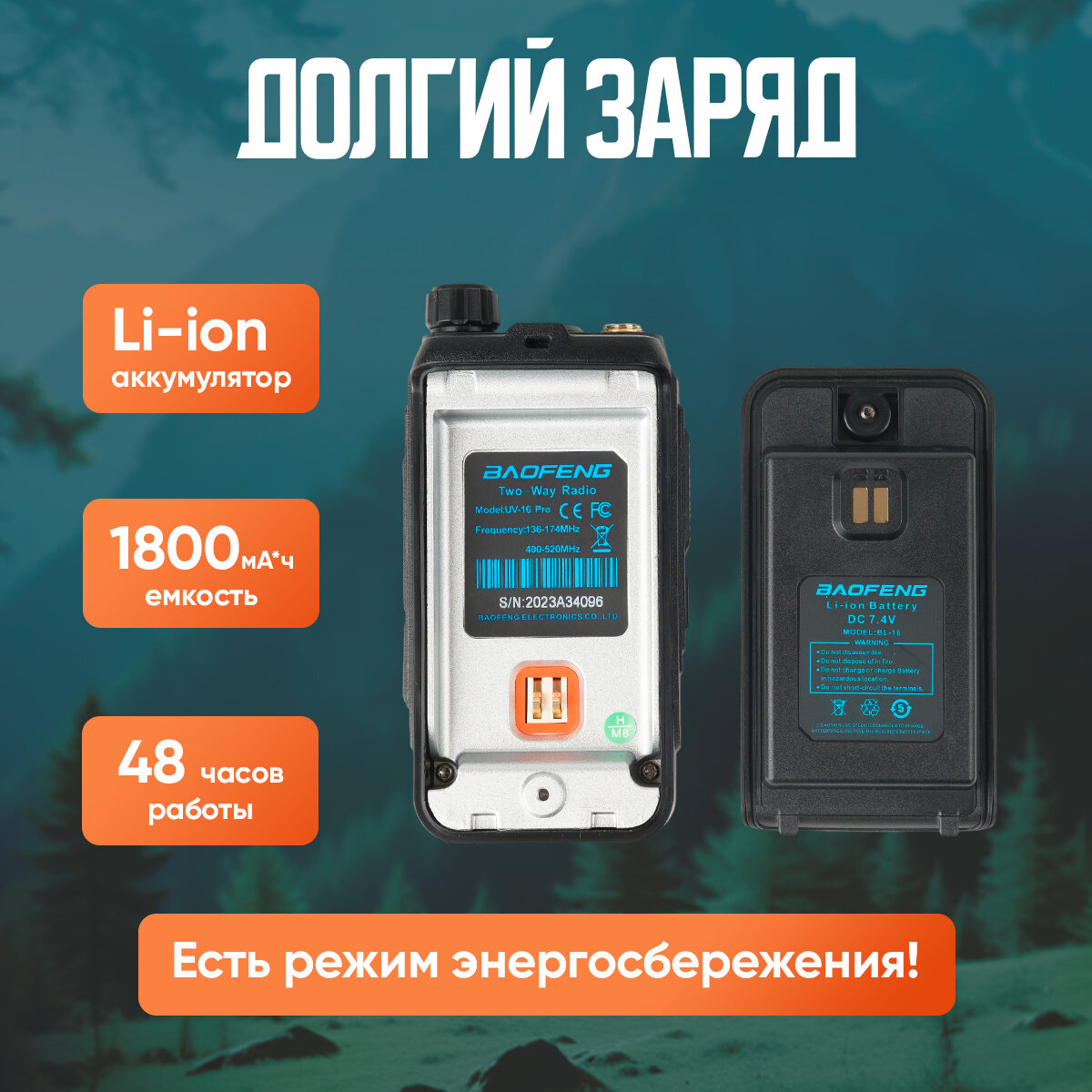 Baofeng Рация UV-16 PRO /1800мАч ( 136-174/400-480) МГц, черный 00029154 . интересное: