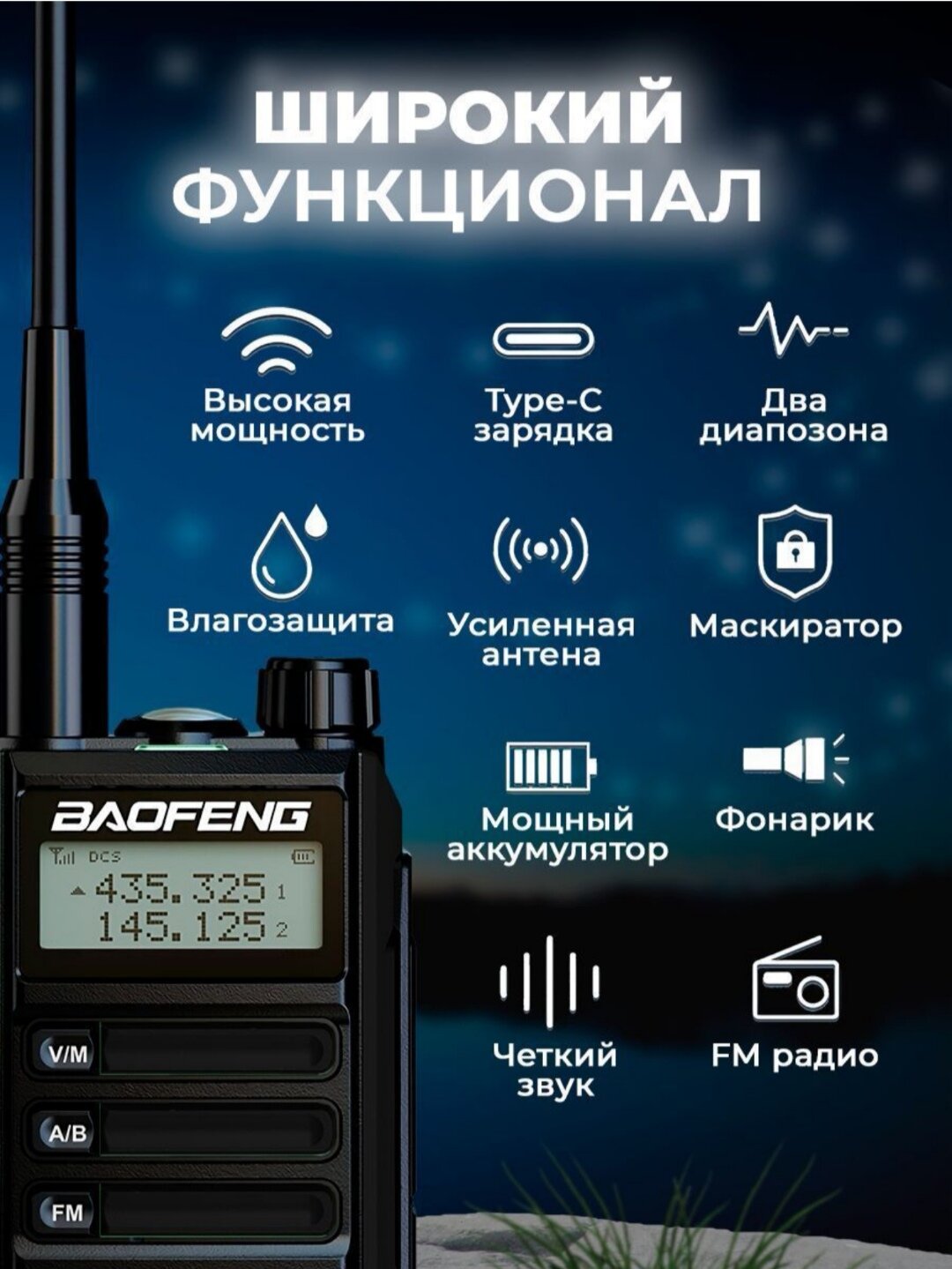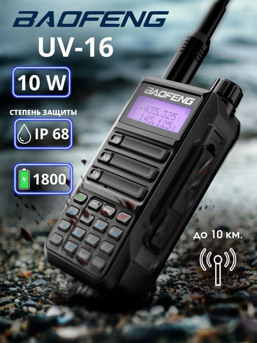 Рация Baofeng "UV-16"Pro 10W, влагозащищенная, черная, 10Вт, 1800мАч,