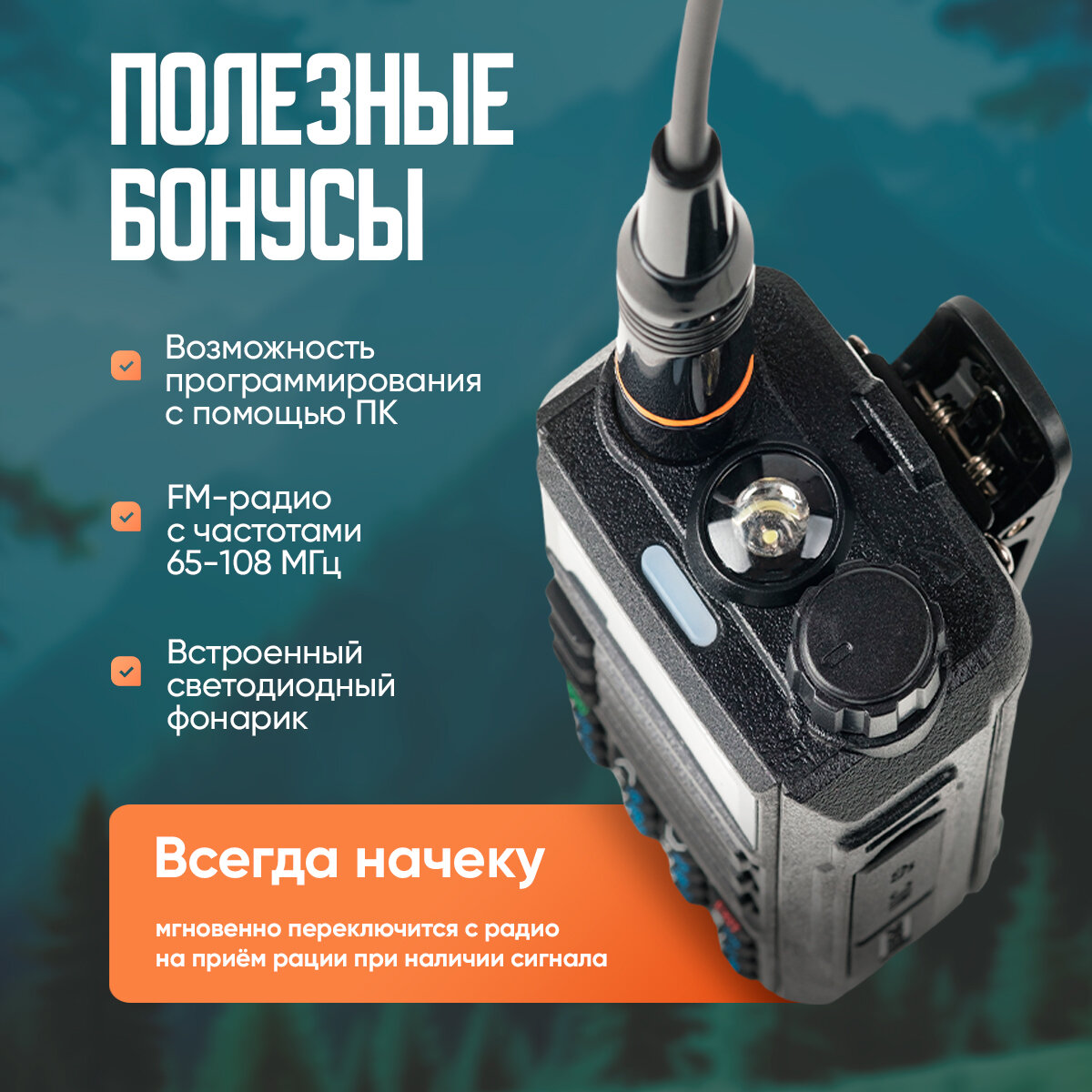 | Особенности | блокировка клавиатуры, голосовая активация без гарнитуры (iVOX), голосовая активация через гарнитуру (VOX), мониторинг каналов, сканирование каналов |