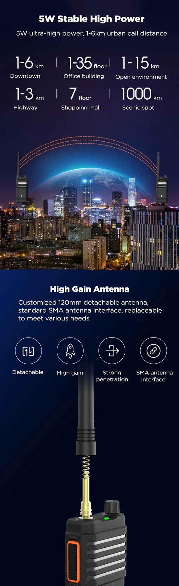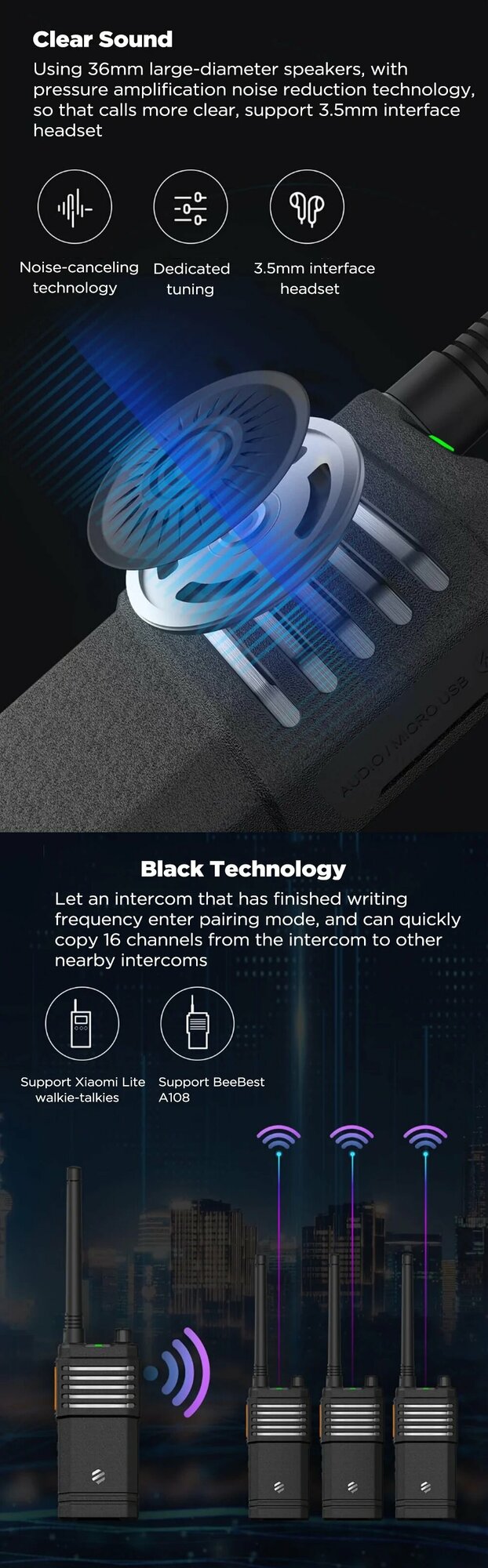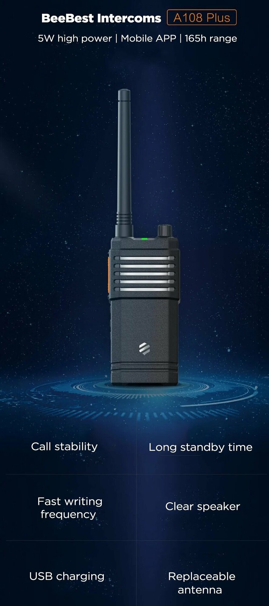 Беспроводная портативная рация высокой мощности Beebest Walkie Talkie A108 Plus интересное: