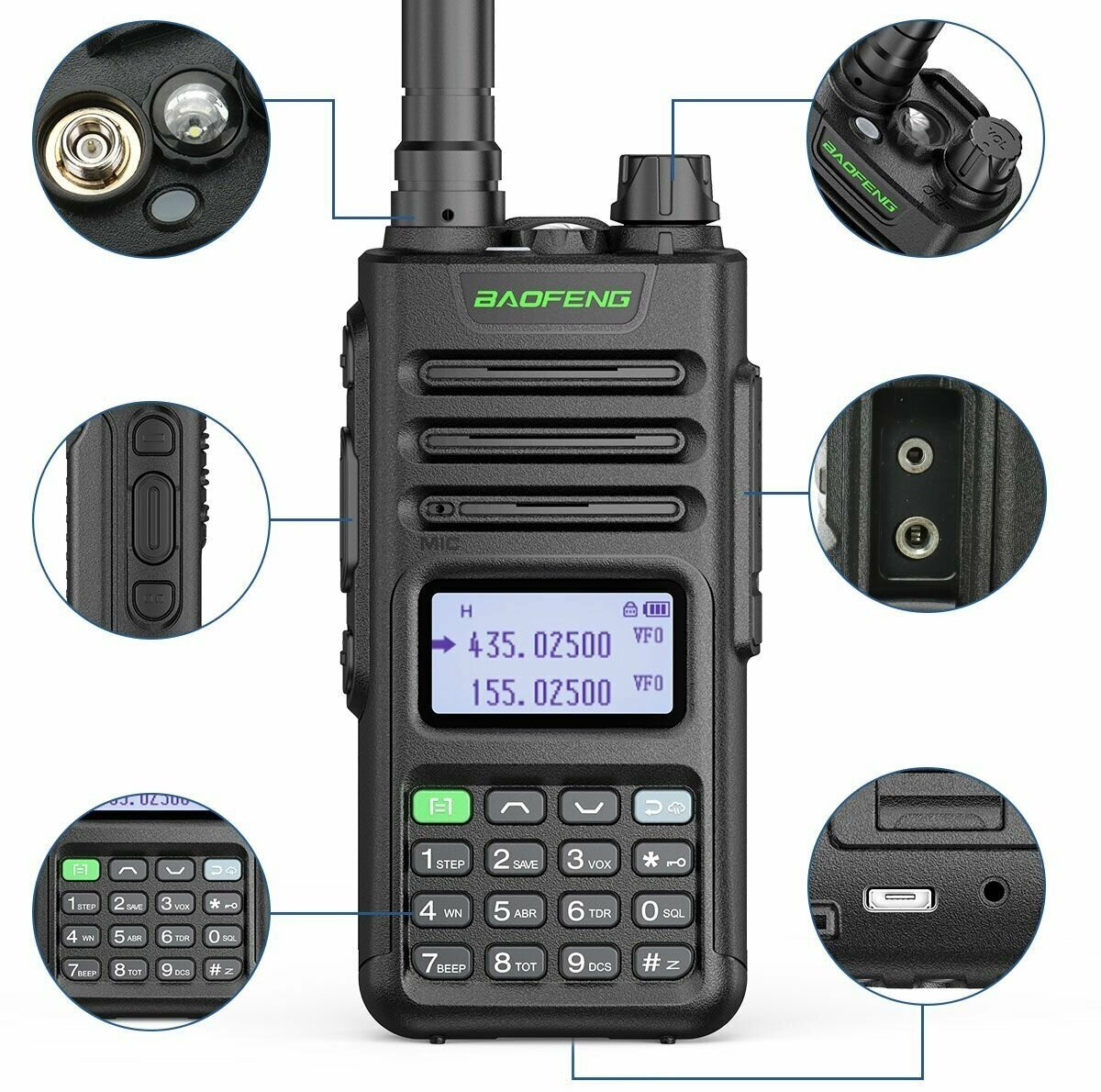 Рация BAOFENG UV-13 PRO Ver. 2 8W Type-C с гарнитурой, цвет зеленый