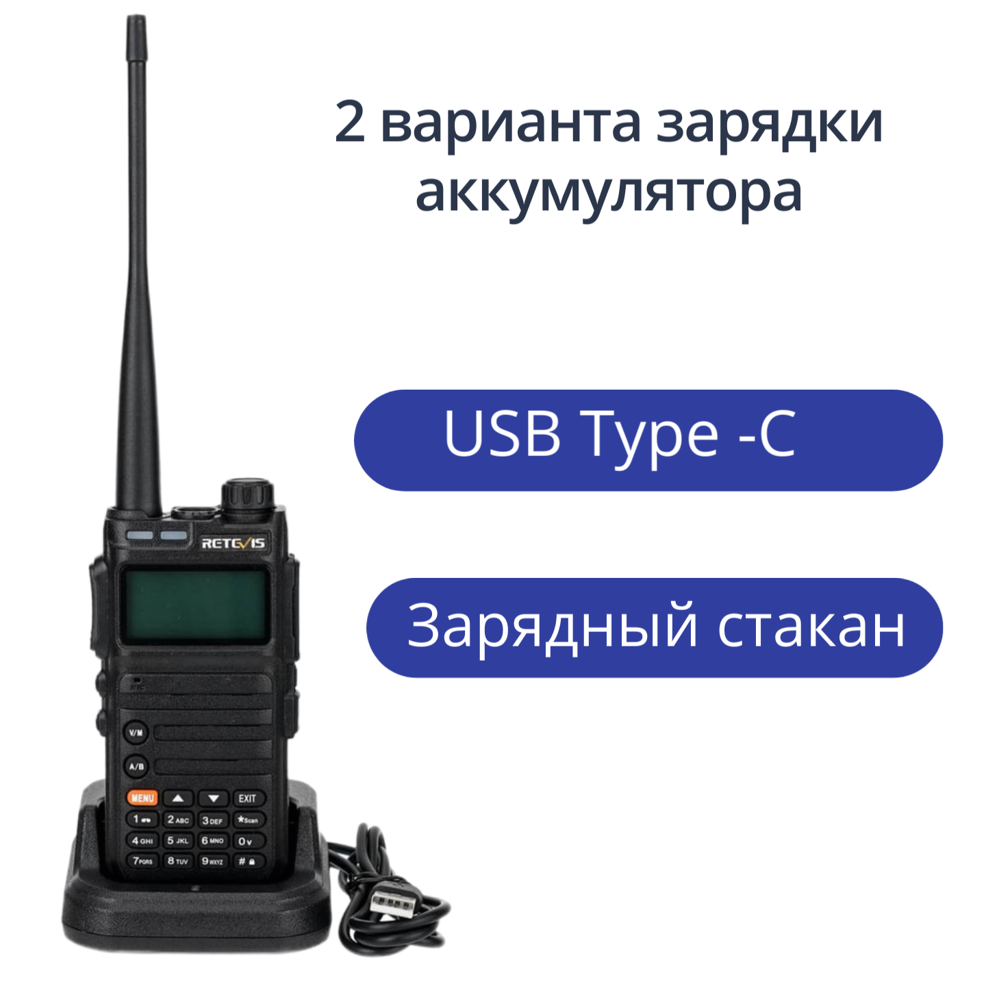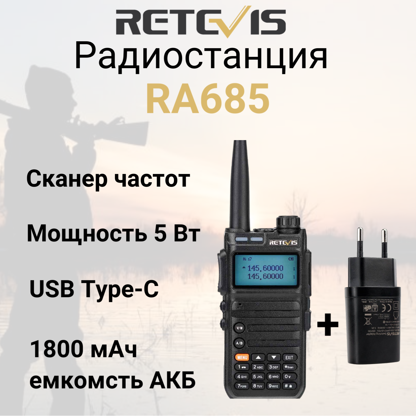 Рация Retevis RA685 5 W. UHF/ VHF, зарядное устройство USB Type C, сканер частот + адаптер интересное: