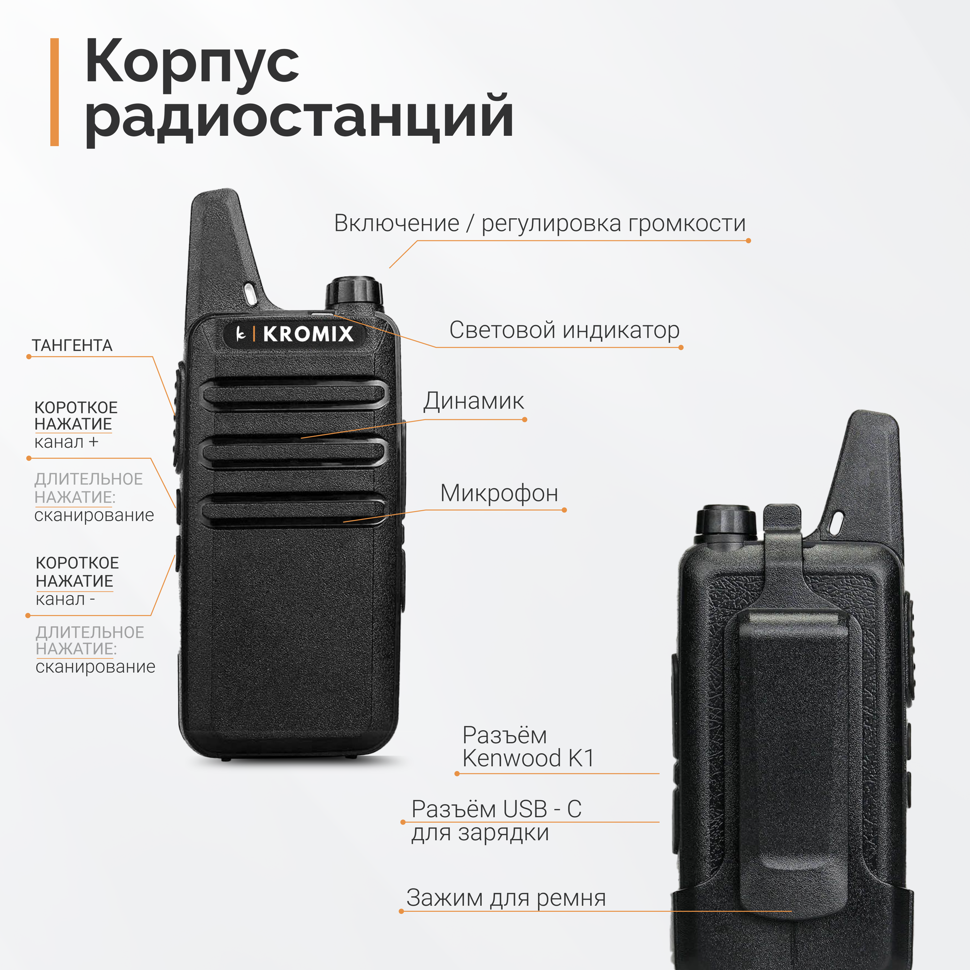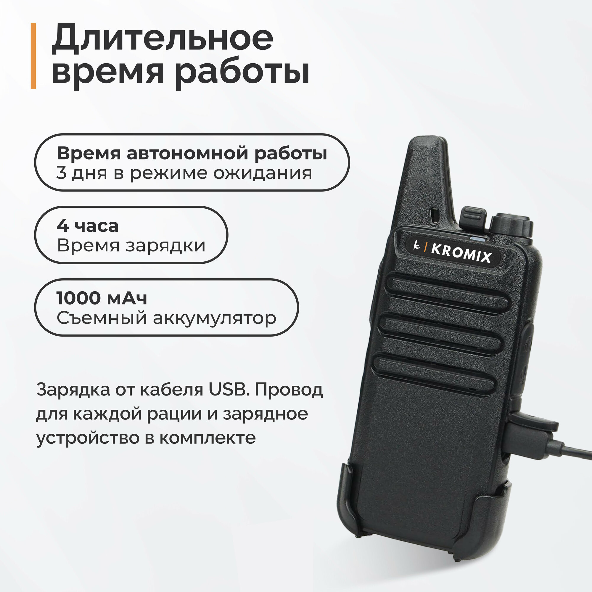 Рации KROMIX R22, комплект 6 штук, черные, с докстанцией интересное: