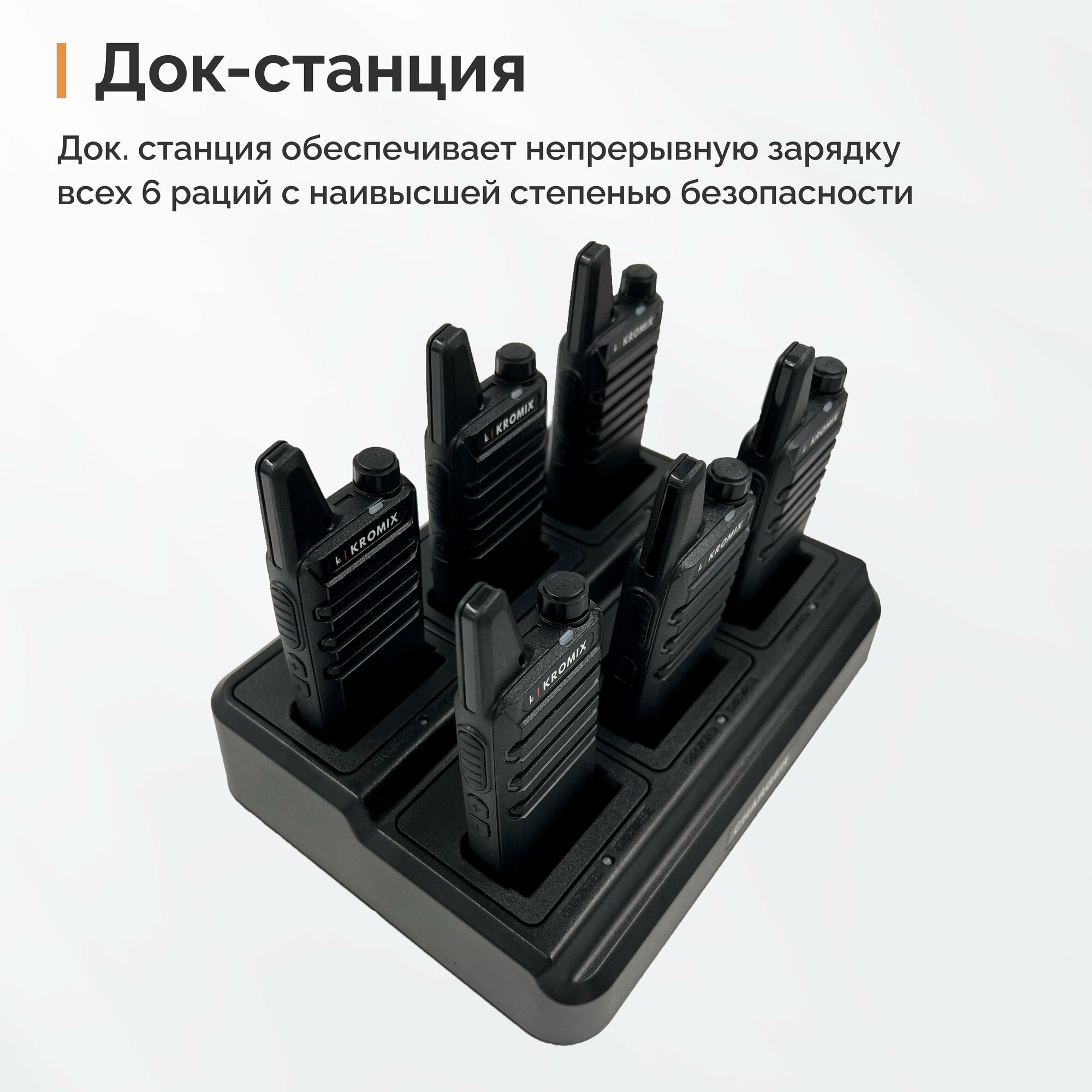 Купить Рации KROMIX R22, комплект 6 штук, черные, с докстанцией