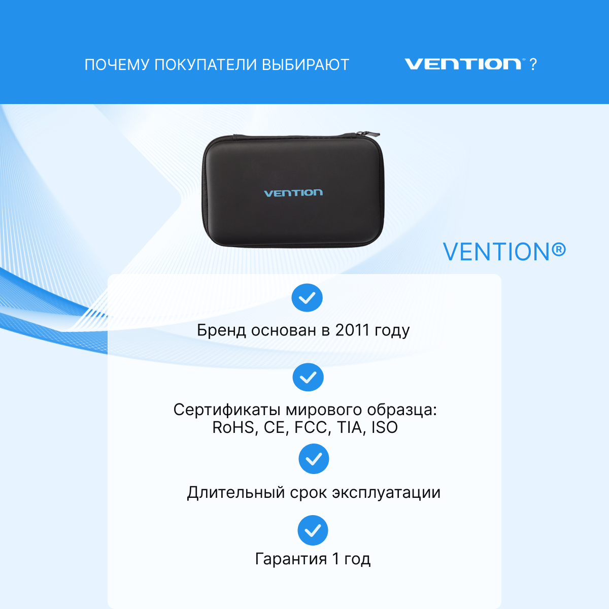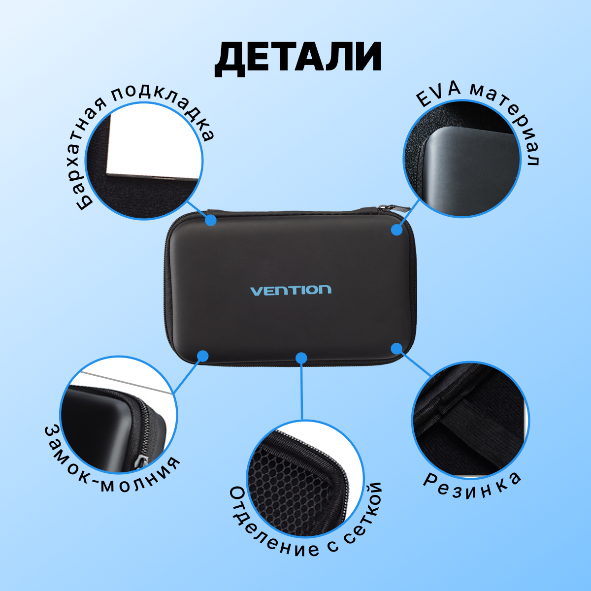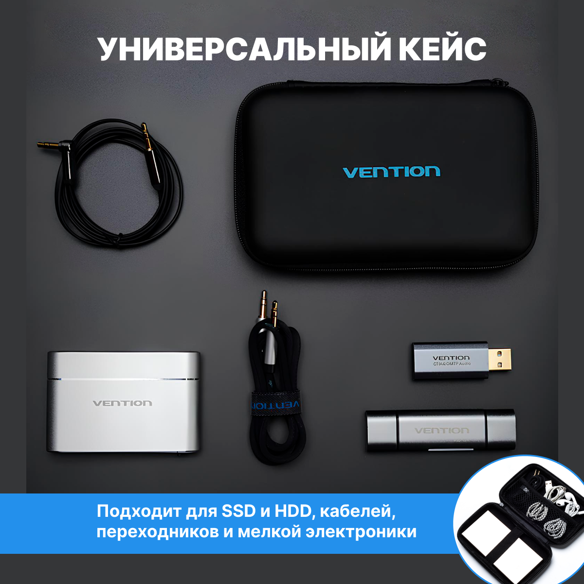 Vention Чехол для жесткого диска, SSD и HDD накопителя, кейс ударопрочный, футляр для проводов, зарядки, арт. KBKB0 интересное: