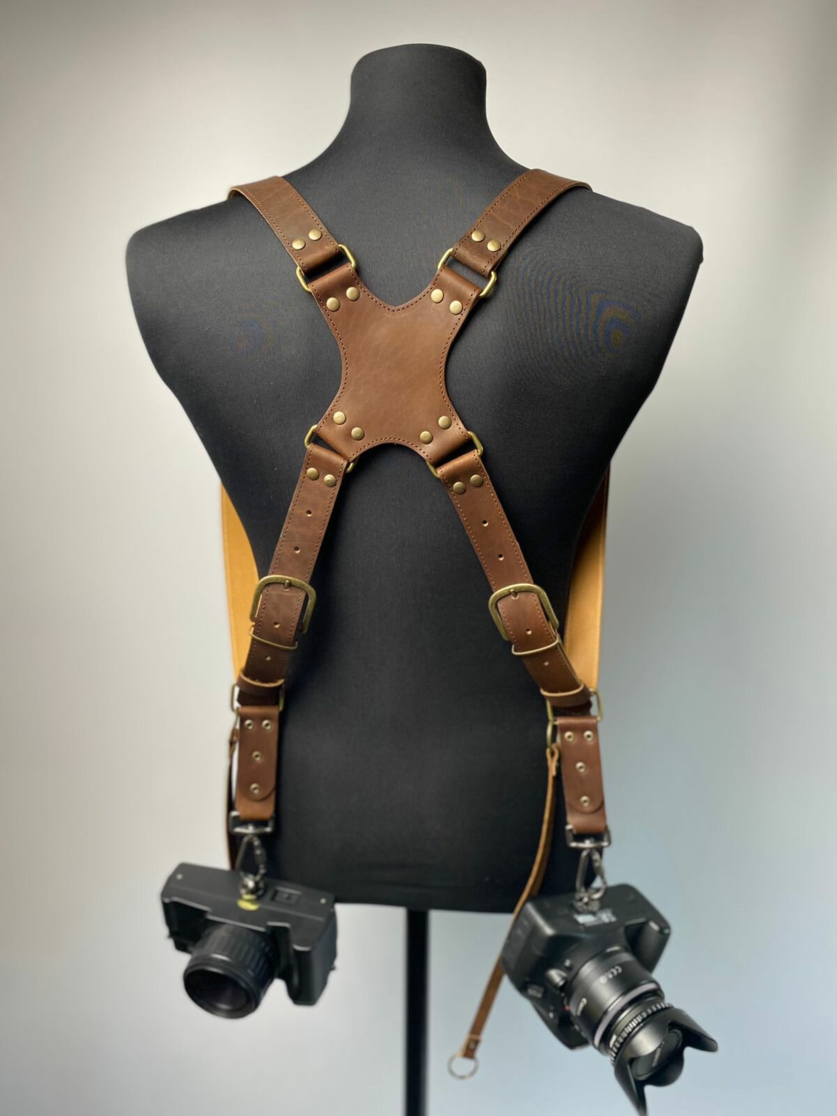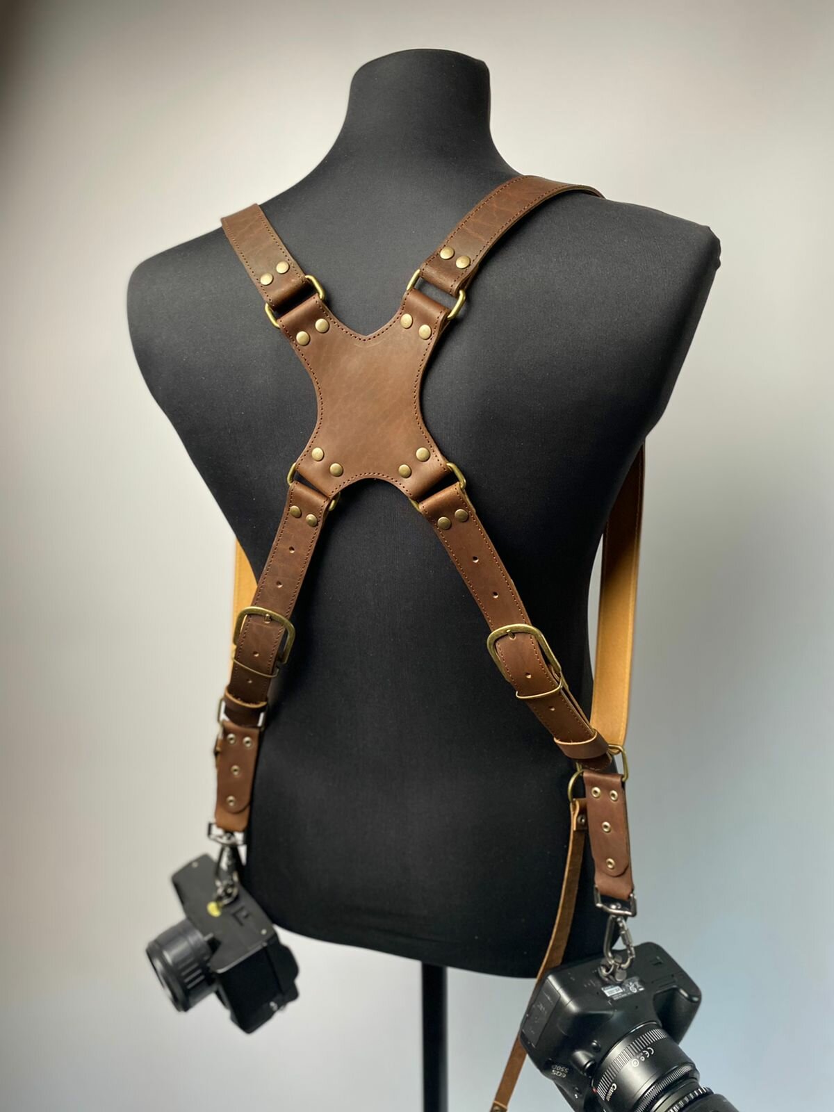 Разгрузка для фотографа на две камеры коричневая с широкими плечевыми ремнями