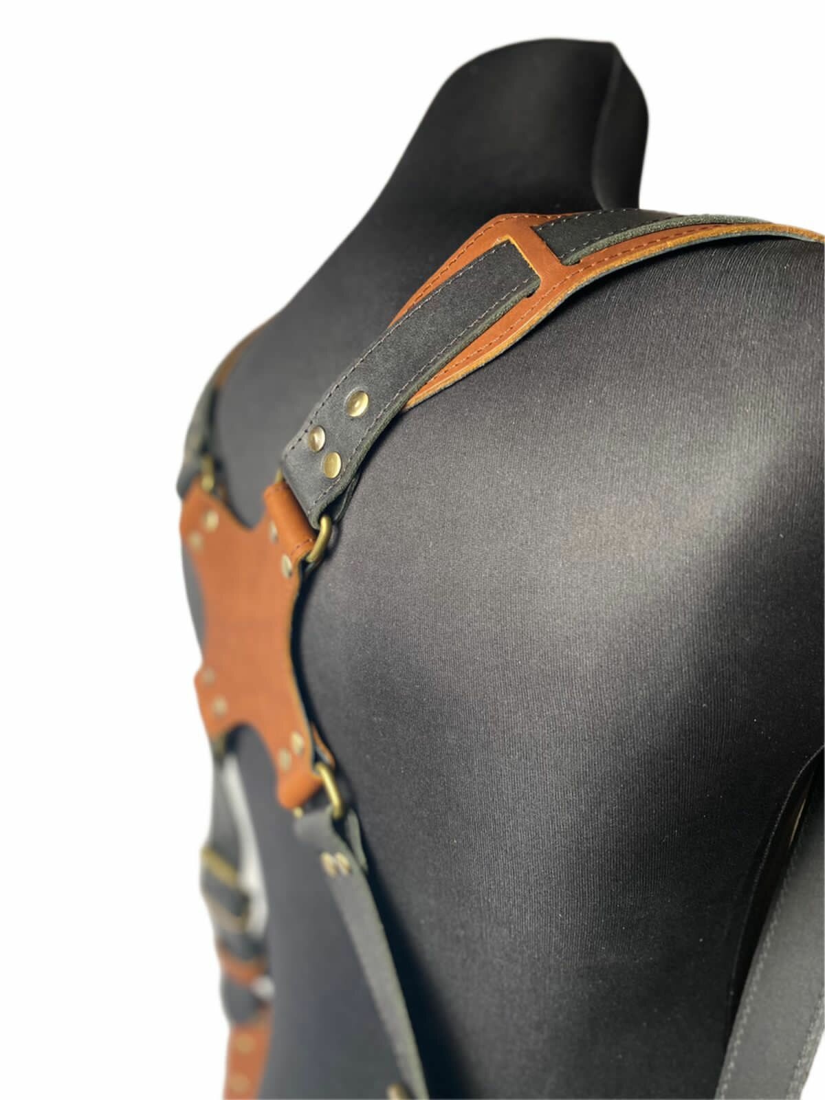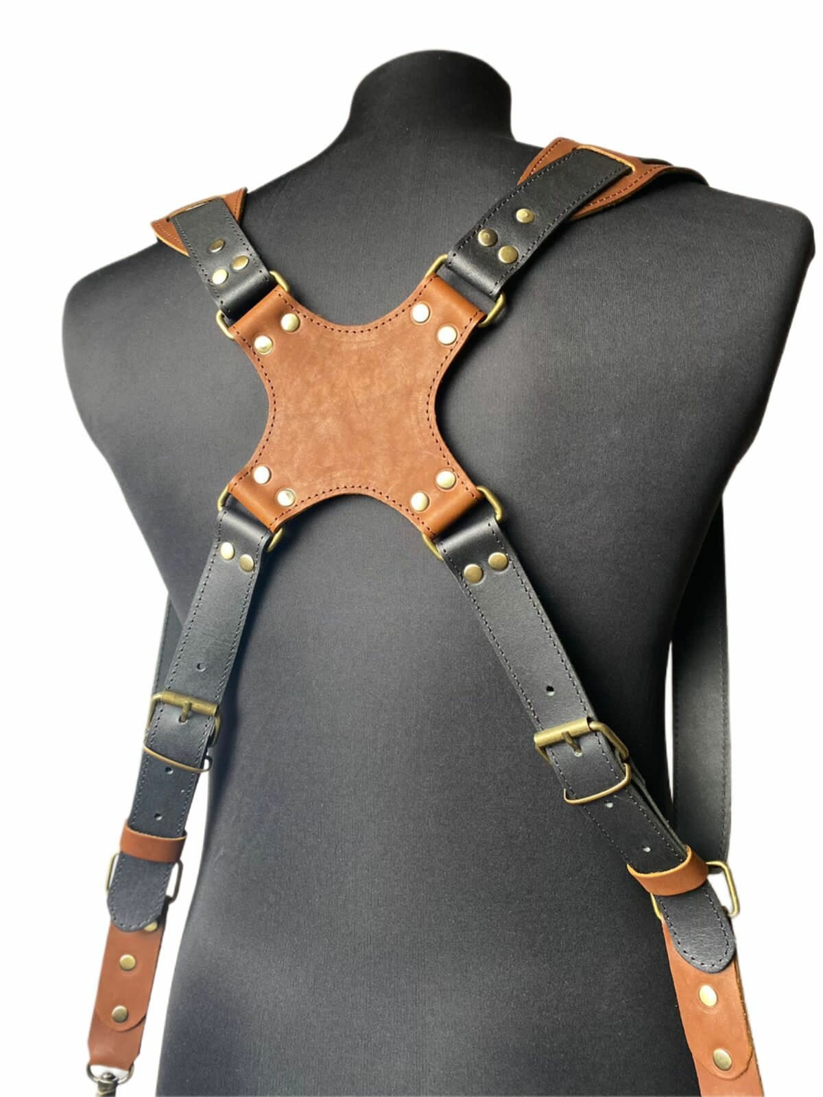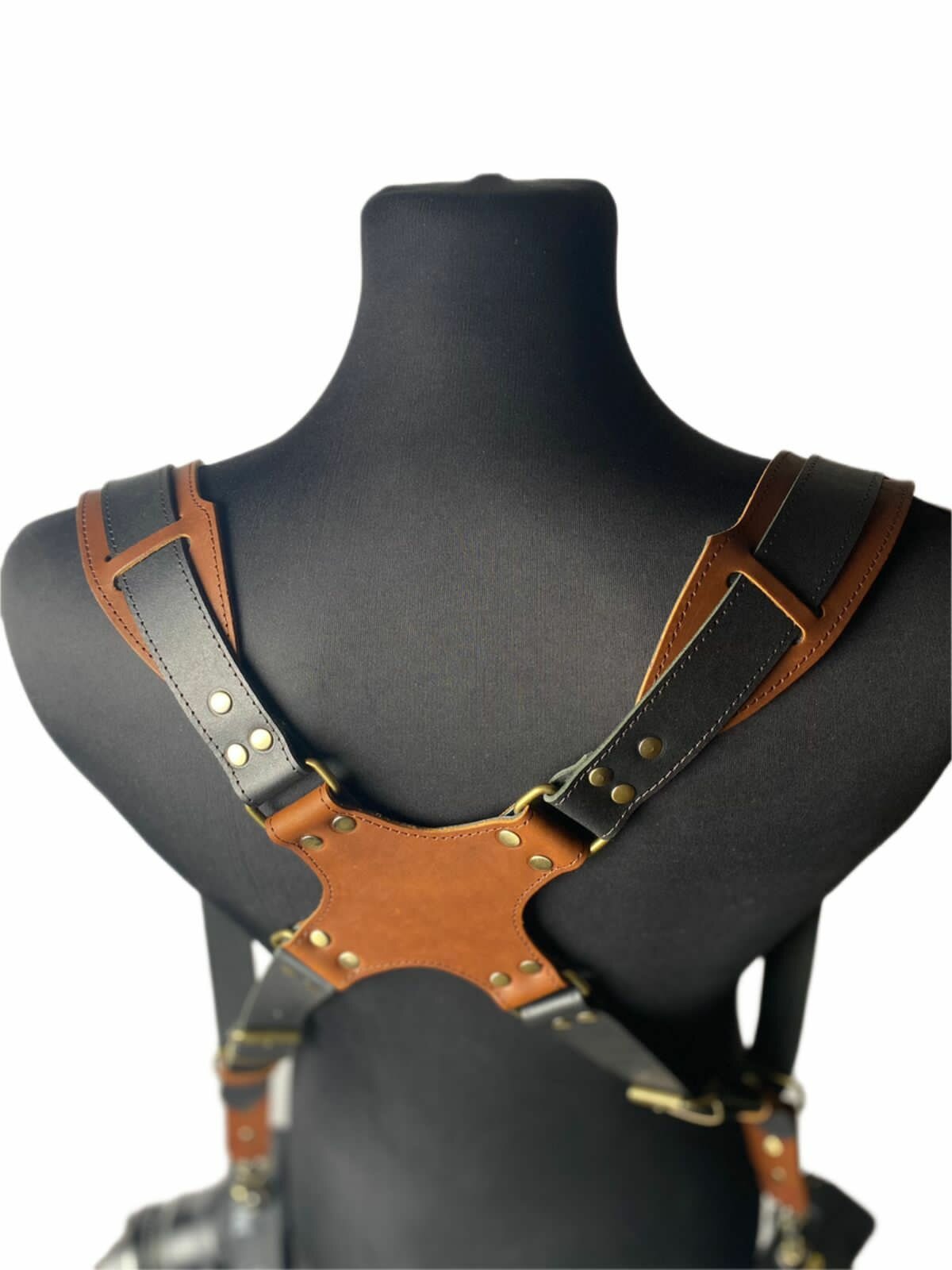 Разгрузка для фотографа на две камеры коричневая с широкими плечевыми ремнями