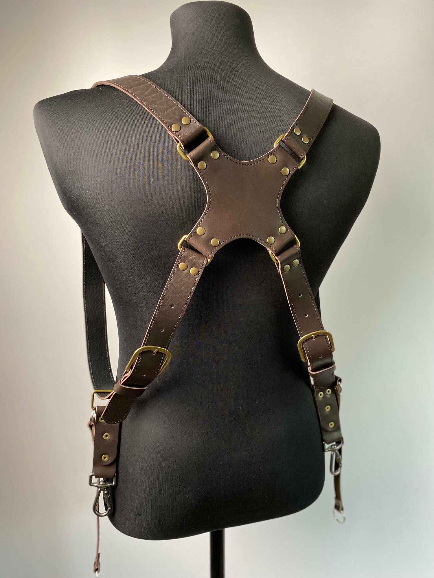 Разгрузка для фотографа на две камеры коричневая с широкими плечевыми ремнями