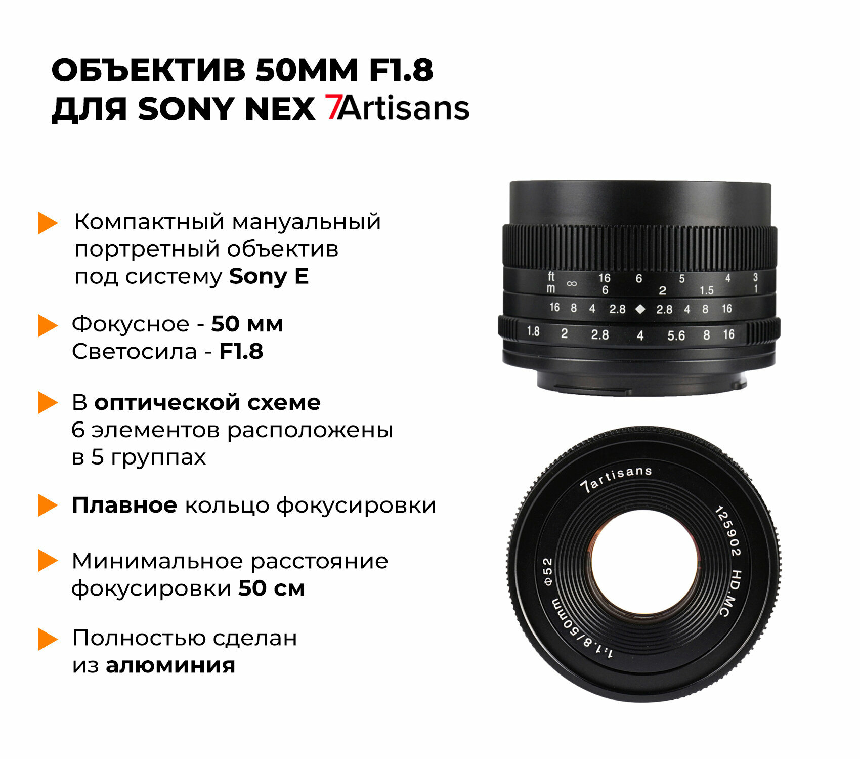 7Artisans 50mm f/1.8 Sony Nex (E-mount) интересное: