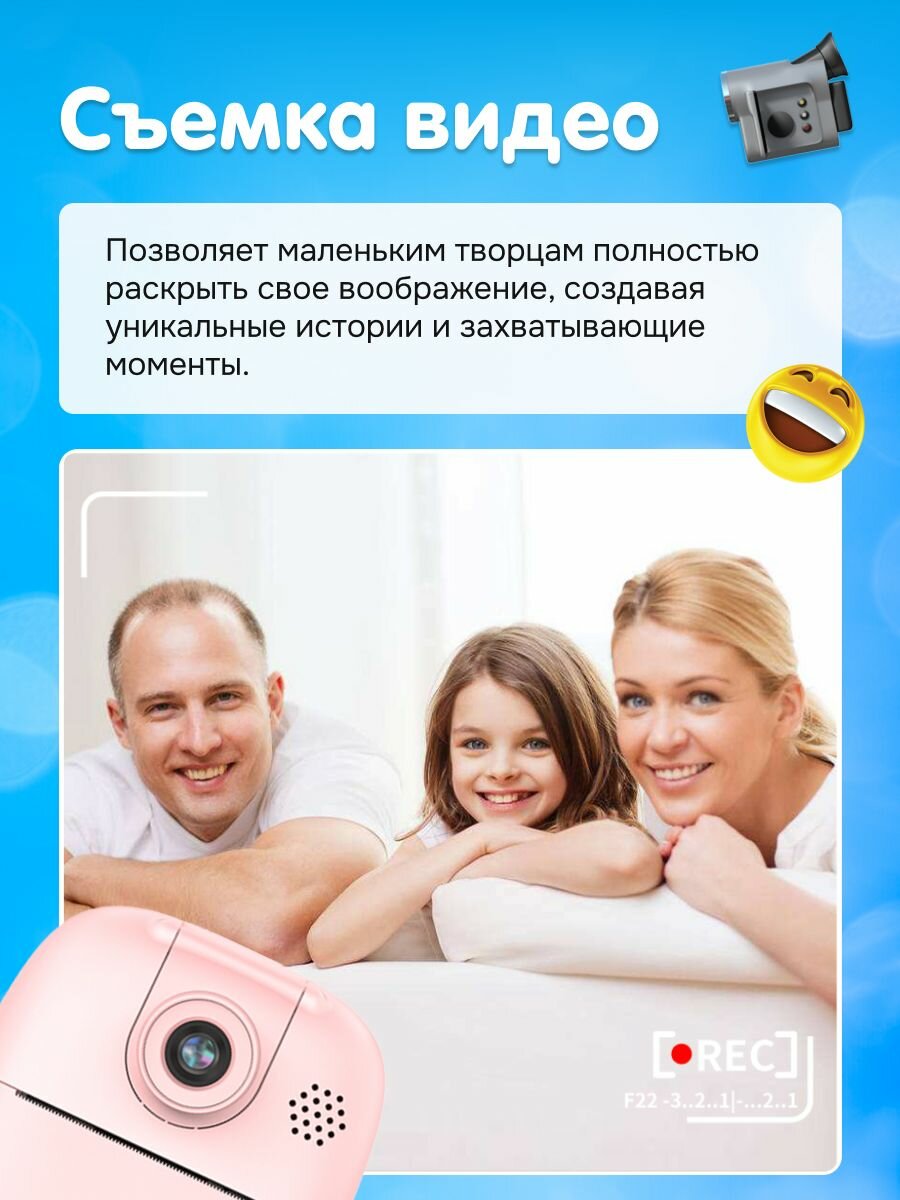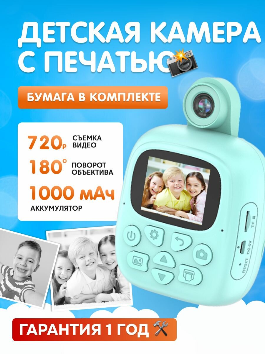 Детская камера c печатью фотографий Kid Joy Print Cam, 2'' HD экран, 1 линза, 1000мАч , угол обзора 180 градусов (P18) русская инструкция, бирюзовая интересное: