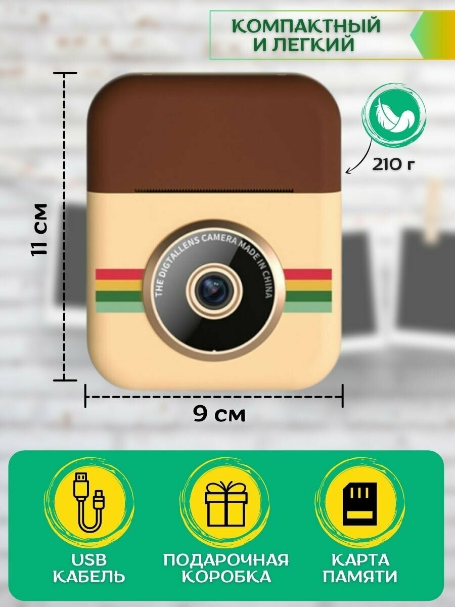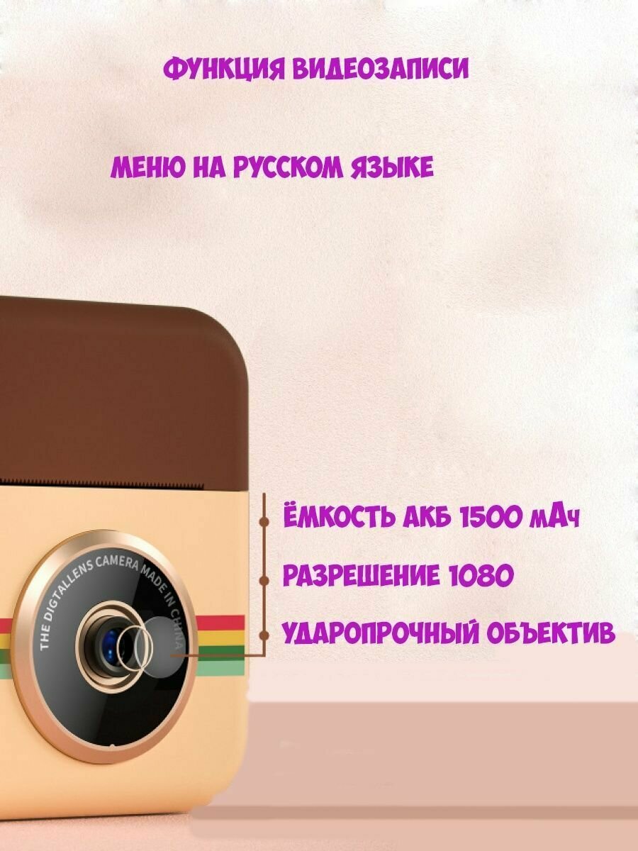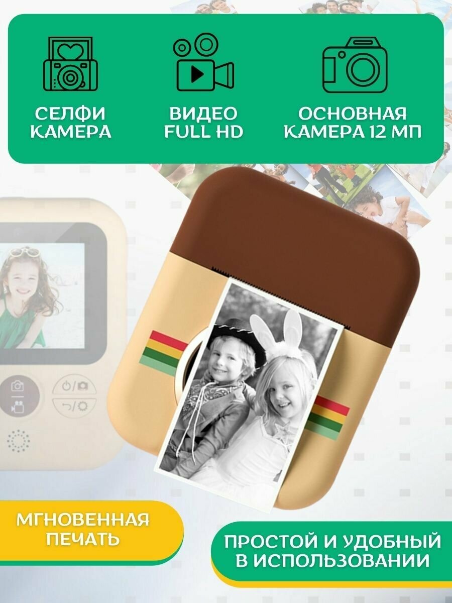 Детский фотоаппарат мгновенной, моментальной печати фото, камера полароид для детей Print camera+CD карта 32GB (Коричневый) интересное: