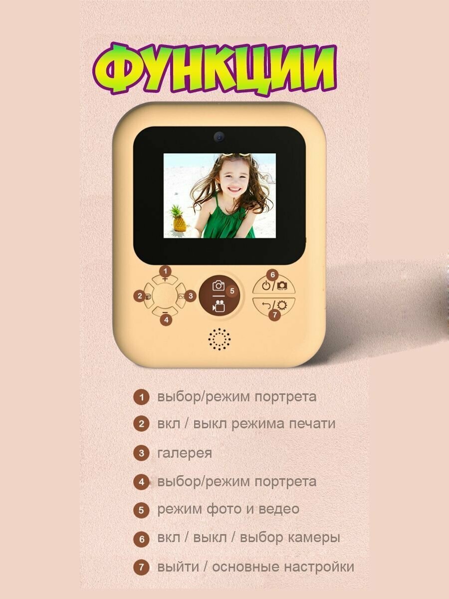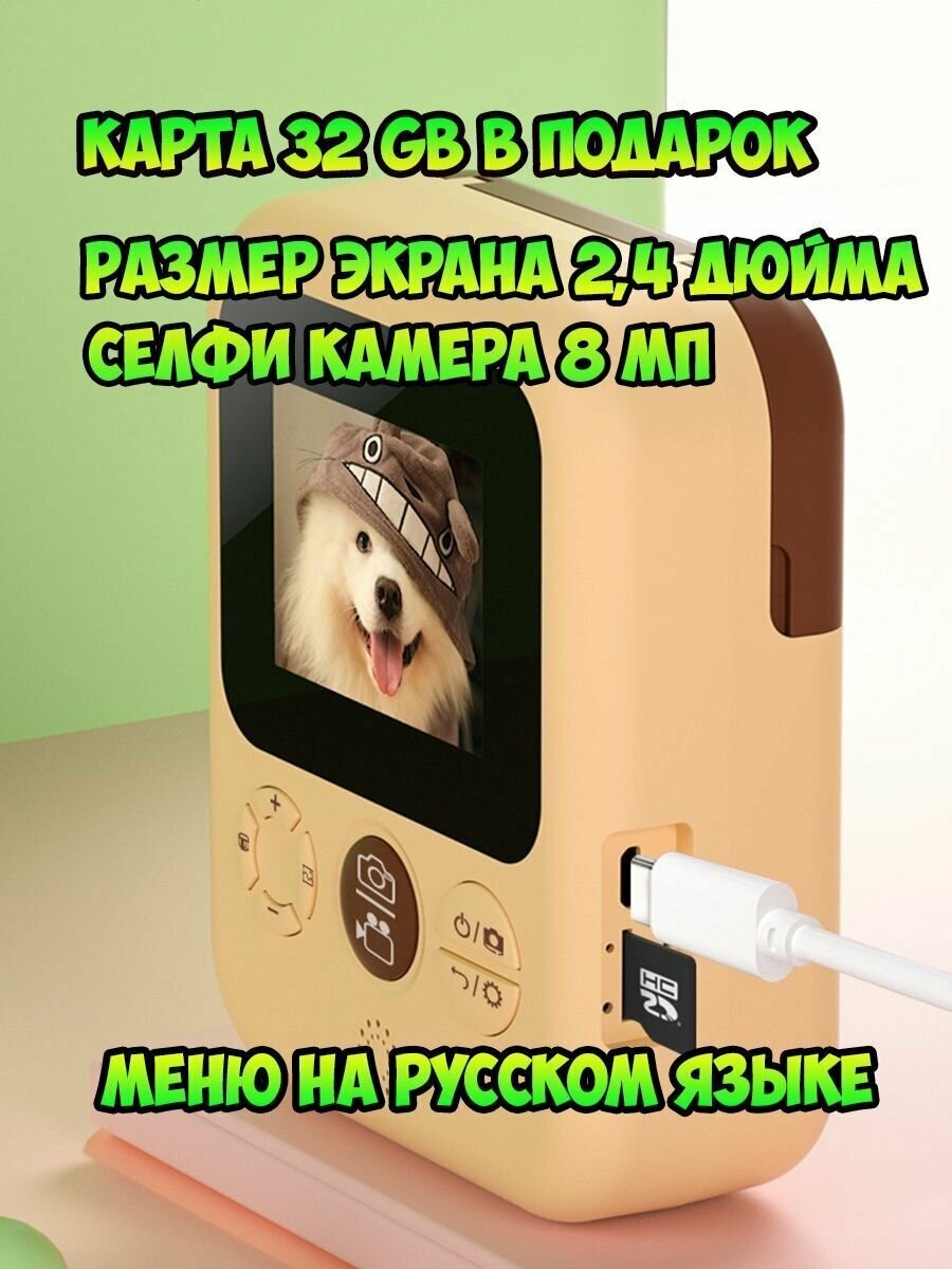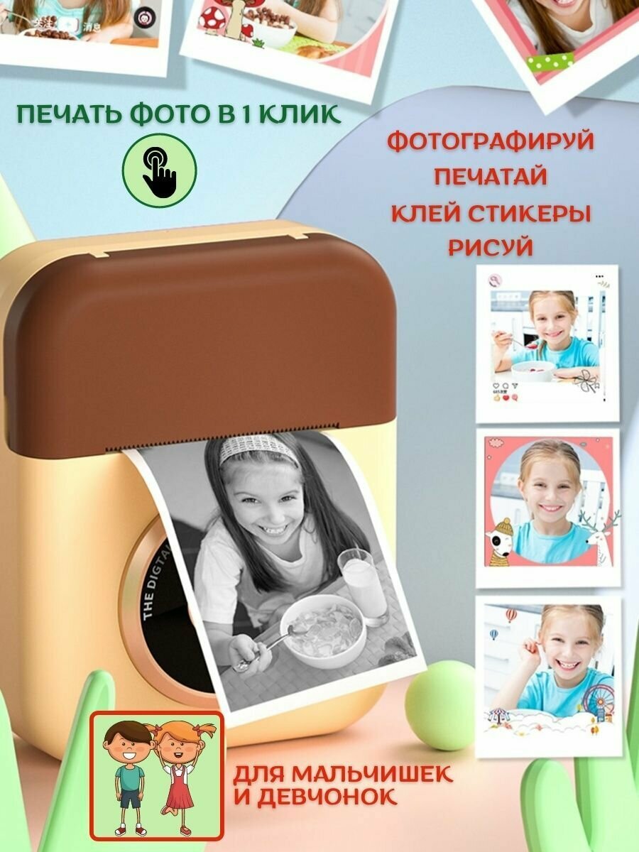 Детский фотоаппарат мгновенной, моментальной печати фото, камера полароид для детей Print camera+CD карта 32GB (Коричневый) интересное: