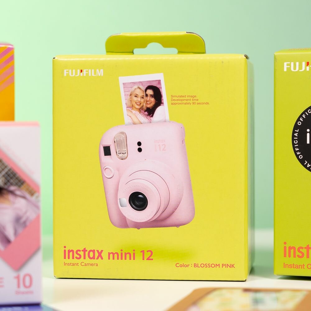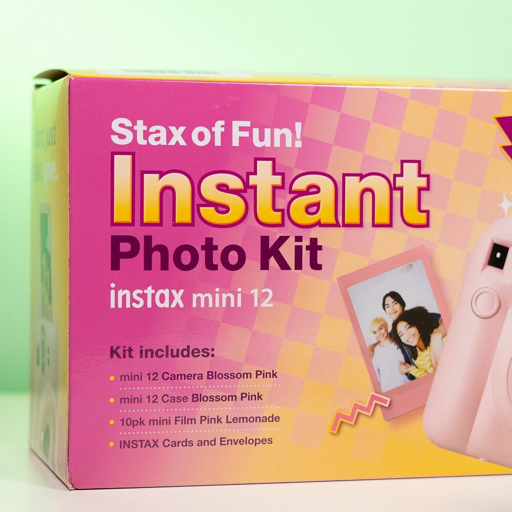 Купить Фотоаппарат Instax Mini 12 Розовый (подарочный набор Stax of Fun!, фотоаппарат чехол, картридж, наклейки, приложение)
