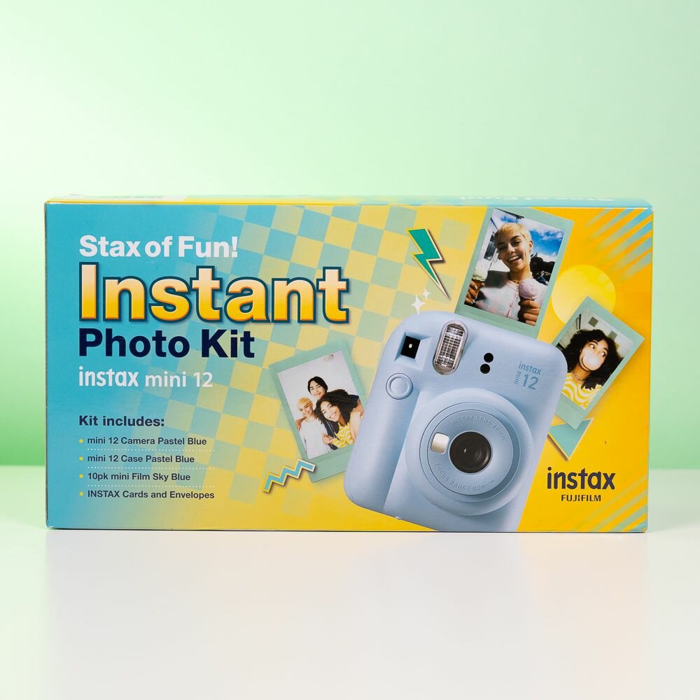 Купить Фотоаппарат Instax Mini 12 Голубой (подарочный набор Stax of Fun!, фотоаппарат чехол, картридж, наклейки, приложение)