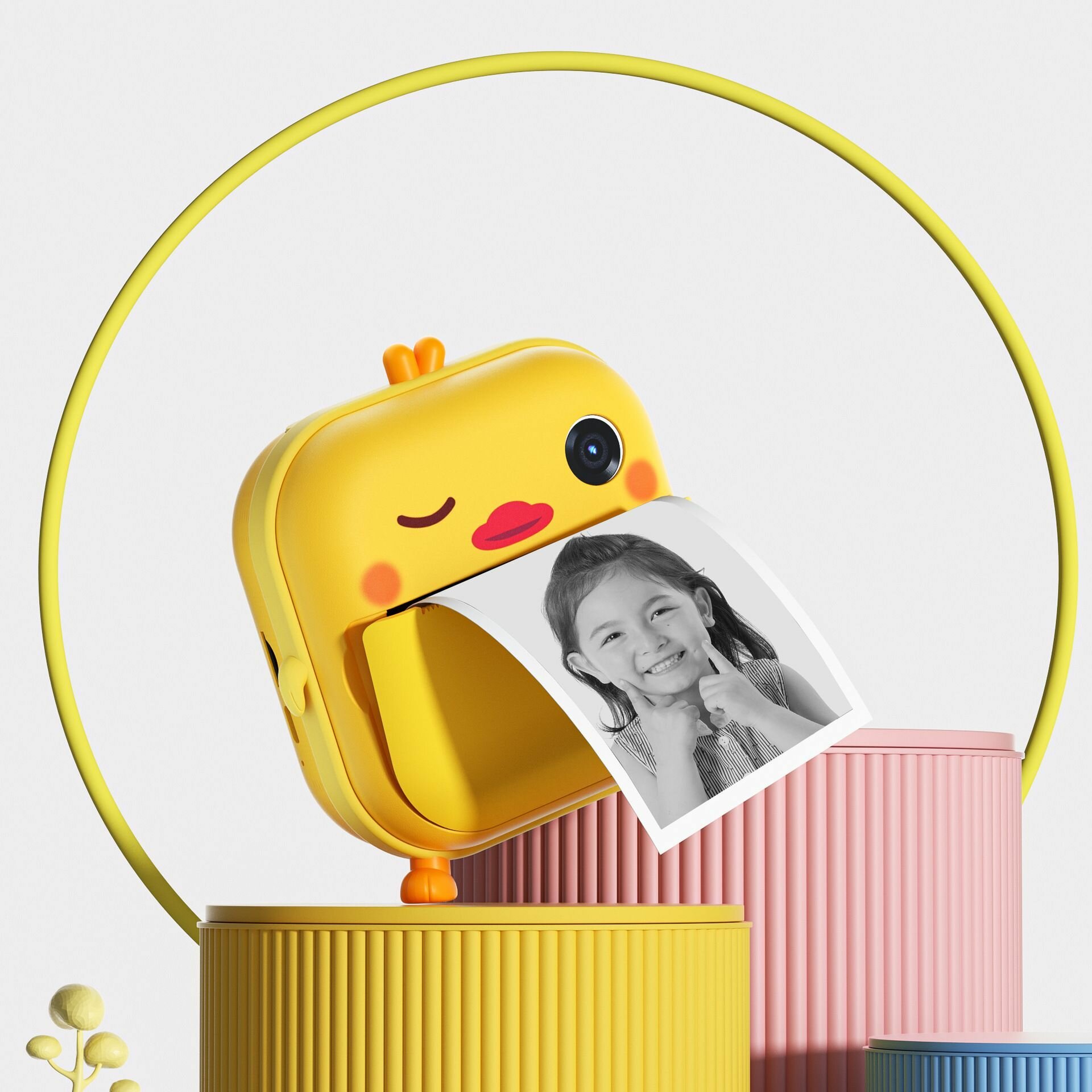 Купить Детский фотоаппарат мгновенной печати Уточка + карта памяти 32 Гб + наклейки и фломастеры