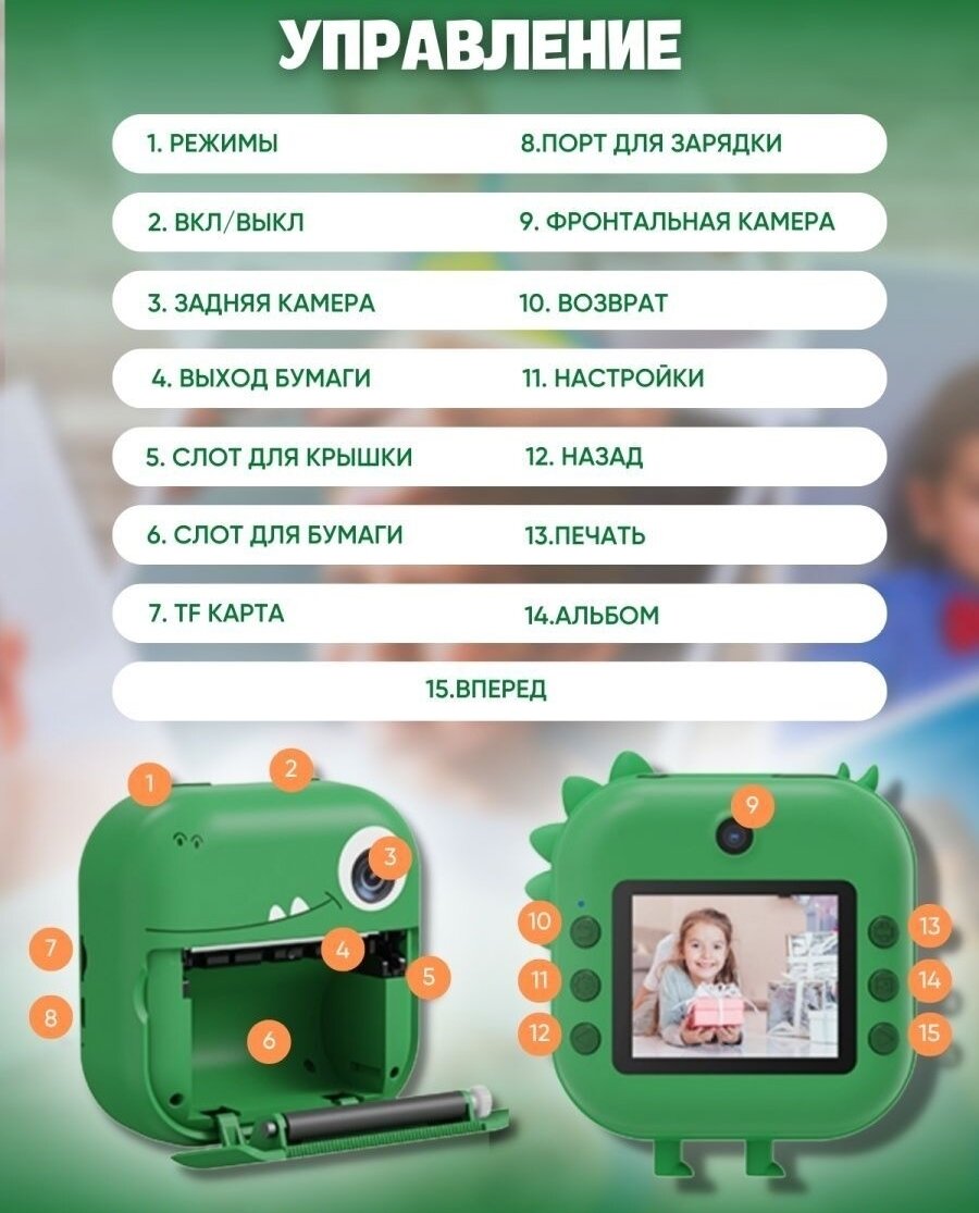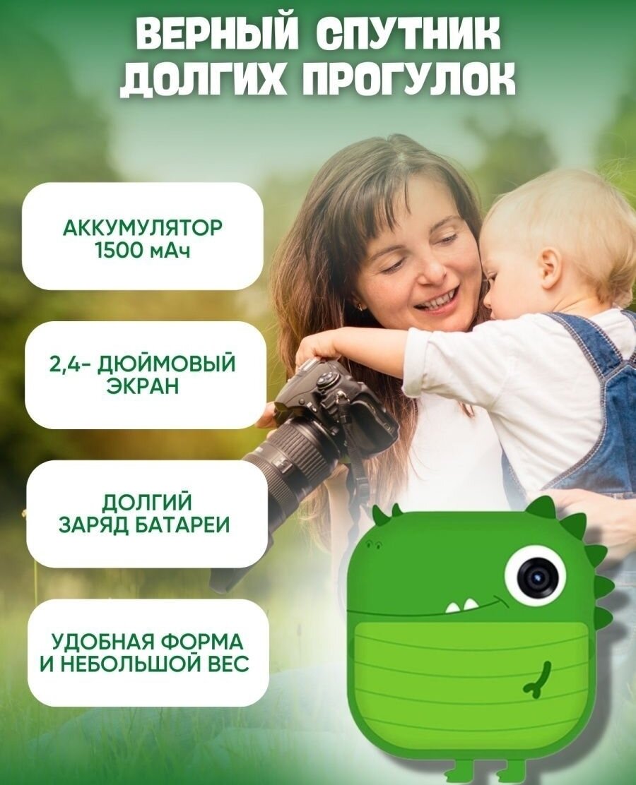 Ниже Вы можете прочитать отзывы на детский фотоаппарат с моментальной печатью фото Динозаврик + SD на 32GB, зеленый, ознакомится с подробными характеристиками, посмотреть интересные обзоры и фотографии на детский фотоаппарат с моментальной печатью фото Динозаврик + SD на 32GB, зеленый.