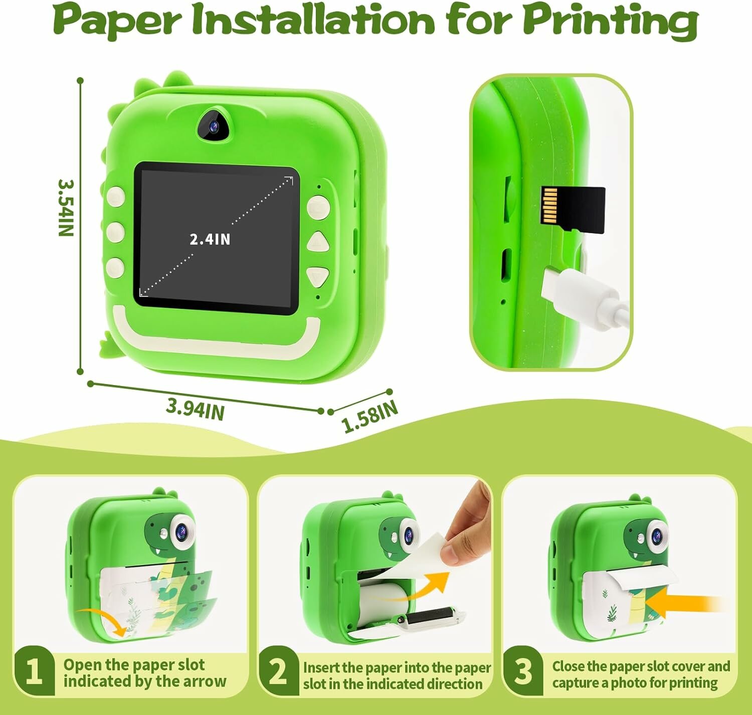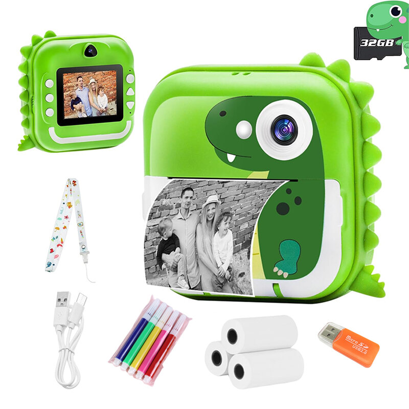 Купить Детский фотоаппарат, карта памяти 32 Гб, 24 Мп фотографий и селфи, Детская портативная камера игрушка, Зелёный