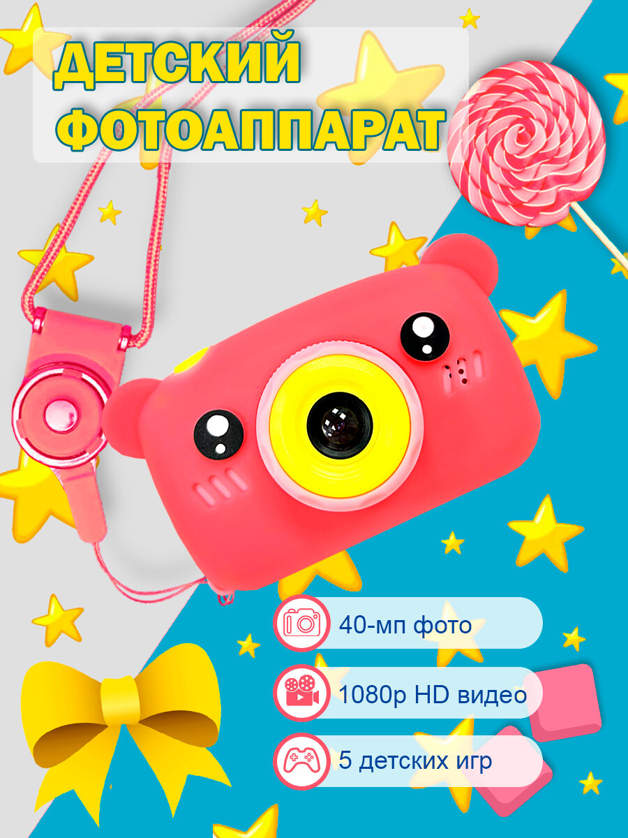 Детский фотоаппарат Медвежонок игрушка 3в1: фото, видео и игры / цвет розовый интересное: