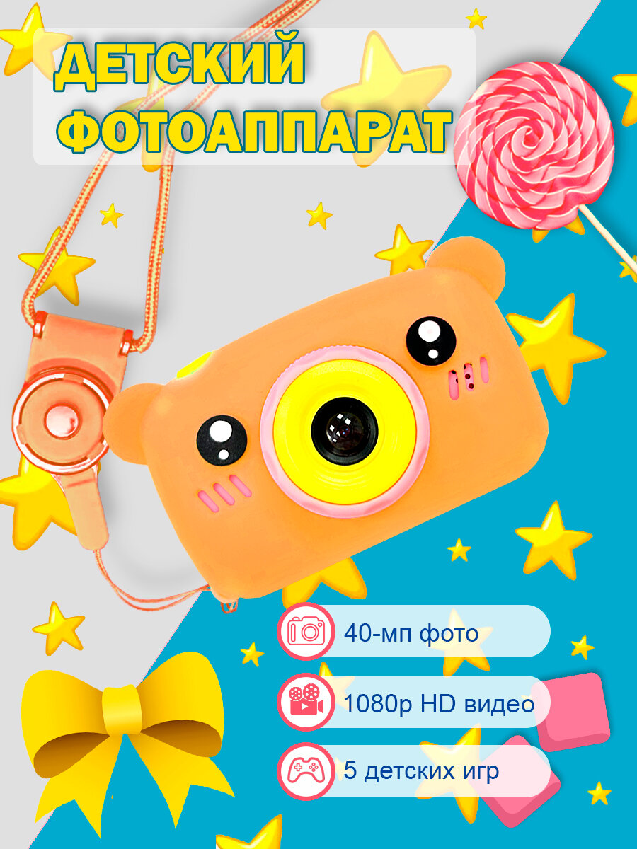 Купить Детский фотоаппарат Медвежонок игрушка 3в1: фото, видео и игры / цвет оранжевый