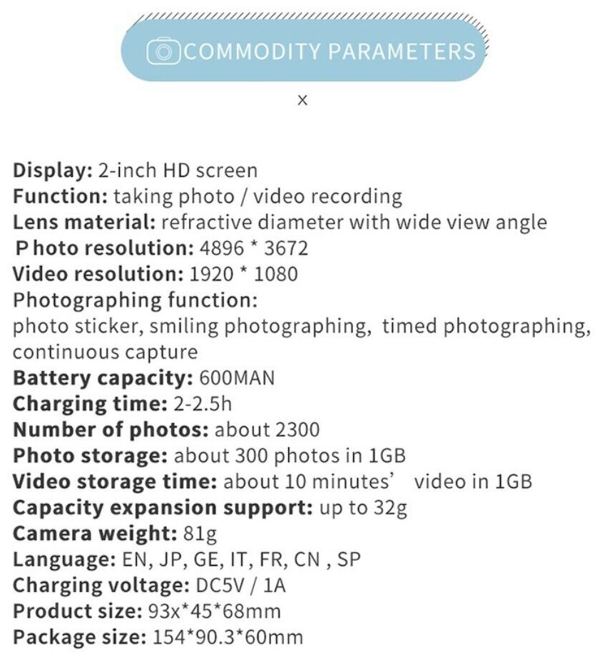 Ниже Вы можете прочитать отзывы на Детская цифровая фото- и видео- камера (без TF-карты) D6 2.0-дюймовый HD IPS-экран 1080P, 8-мегапикселей - голубая, ознакомится с подробными характеристиками, посмотреть интересные обзоры и фотографии на Детская цифровая фото- и видео- камера (без TF-карты) D6 2.0-дюймовый HD IPS-экран 1080P, 8-мегапикселей - голубая.