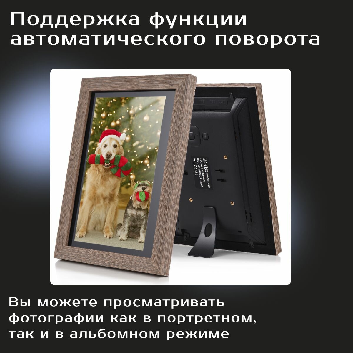 Умная Цифровая фоторамка FRAMEO, экран 10.1 дюйм. Цвет: Коричневое дерево TOUCH SCREEN SMART WI-FI Photo Frame Сенсорный экран, фото, видео и звук.1280x800 пикселей.